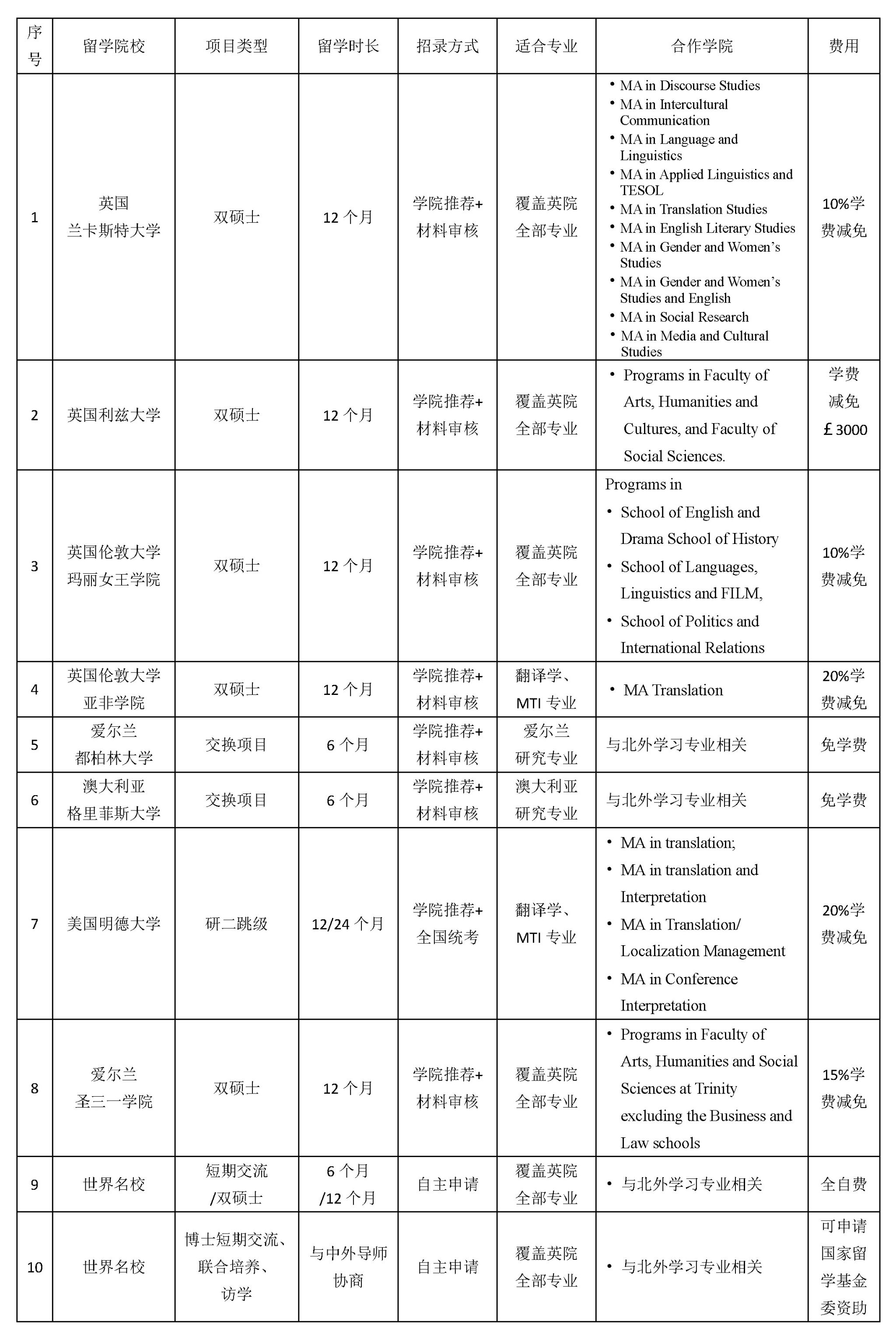 太阳集团tyc9728研究生(含硕士生和博士生)短期留学项目旨在培养国际化复合型人才,为学生提供赴世界名校交流学习的机会。硕士生出境交流时间须在完成一年学习之后根据具体情况确定,博士生须与导师商量后确定。短期留学项目注重夯实学生专业功底,提升学生的专业素养、跨学科能力及国际竞争力,助力学生全面发展。学生在外就读专业与北外在读专业相关,所修学分得到认可,可计入毕业学分。各项目简要介绍请参见下表。