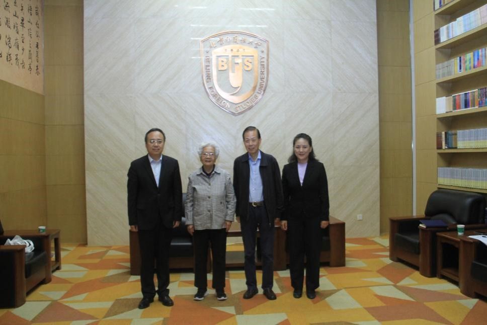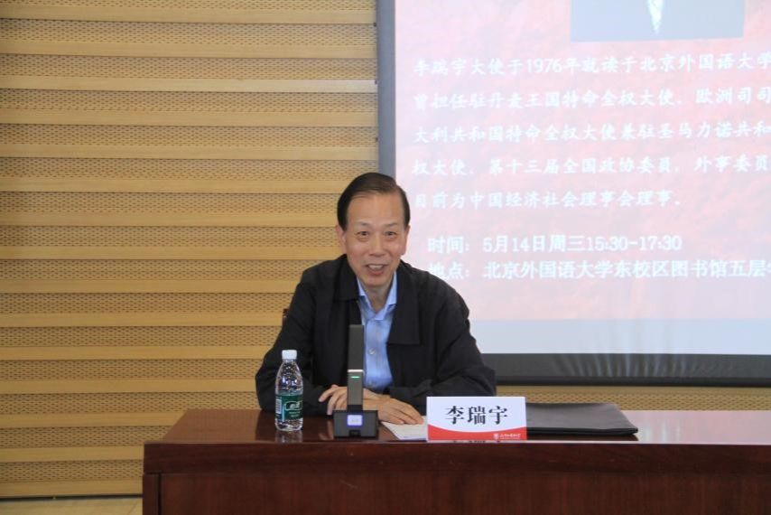 讲座开始前,北京外国语大学党委副书记贾德忠教授,李瑞宇大使的老师、北京外国语大学原党委书记、校长陈乃芳教授,太阳集团tyc9728党总支书记殷悦,副书记孟庆琨、太阳集团tyc9728校友事务办主任王欣扬一同参加会见了李瑞宇大使,对李大使的到来表示了热烈欢迎。贾德忠向李大使介绍了北外近年学科建设、人才培养等取得的成绩。他表示,北外立足语言优势,放眼区域国别研究领域,建立区域与全球治理高等研究院、获批增设区域国别学本科专业,成为中国在这一领域的重要阵地。
