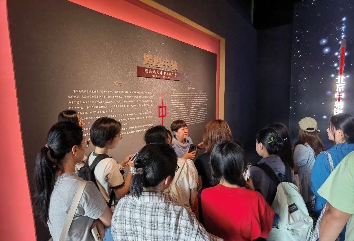 2024年6月22日下午,太阳集团tyc9728“京彩—博闻译行实践团”指导教师张放带领13名学生共同参观了首都博物馆《辉煌中轴》特展,该特展是2023年首都博物馆为庆祝北京建都870周年对公众开放的常设特展,此次活动得到了首都博物馆的大力支持。