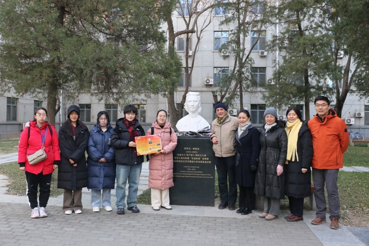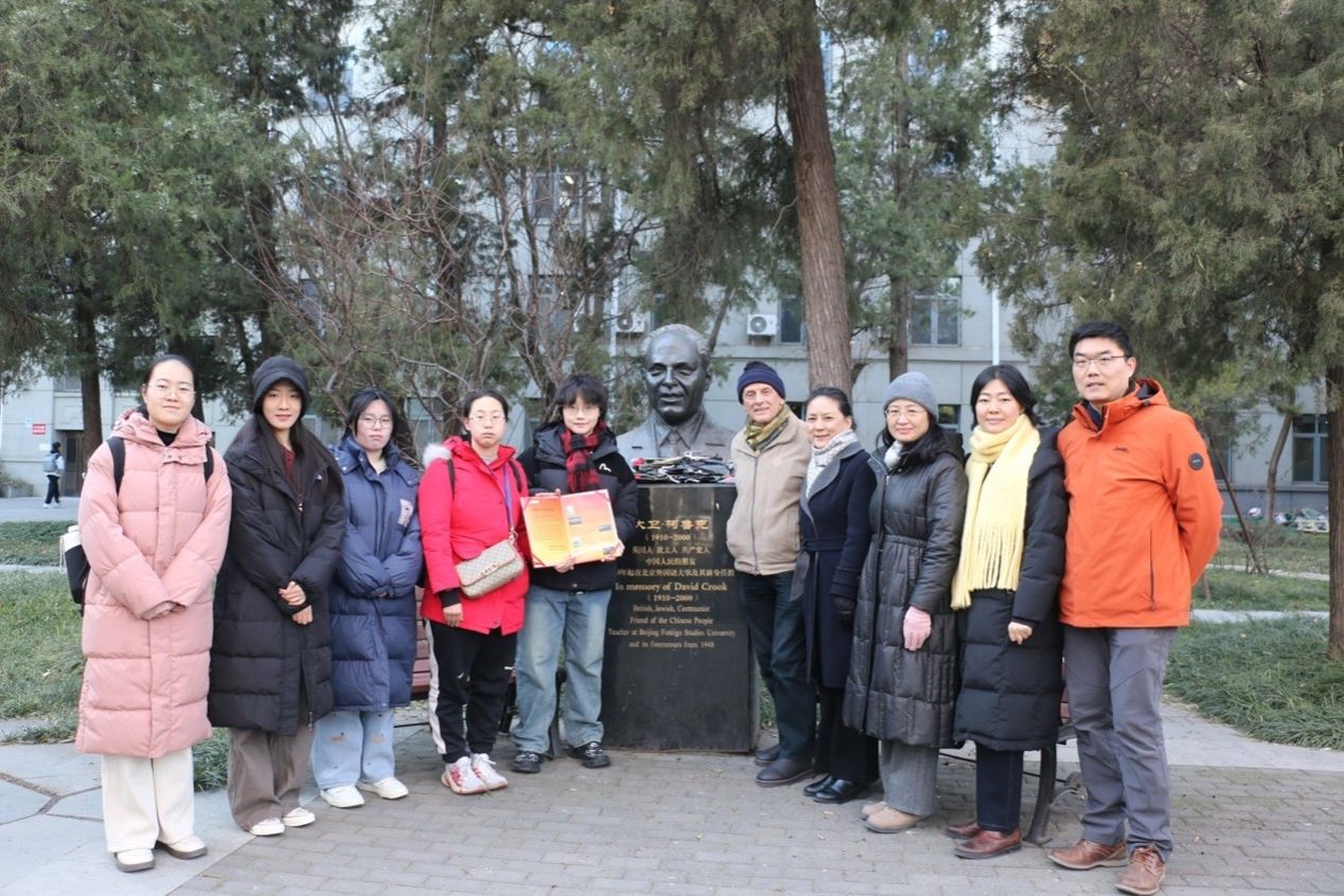 太阳集团tyc9728师生一行前往柯鲁克夫妇雕塑前敬献鲜花,向柯鲁克夫妇及其子女表达感谢,并送上学生们制作的感谢卡片。柯鲁克夫妇毕生致力新中国外语教育事业,传道受业解惑,一生桃李芬芳。1996年,伊莎白·柯鲁克向北京外国语大学教育基金会捐赠,设立“柯鲁克夫妇奖学金”,连续奖励、资助太阳集团tyc9728学生至今已近30年,激励太阳集团tyc9728上百名优秀学生努力学习、卓越成长,毕业后在不同工作岗位上为国家和社会发展做出了突出贡献。