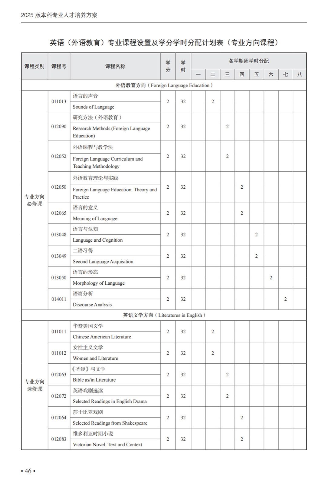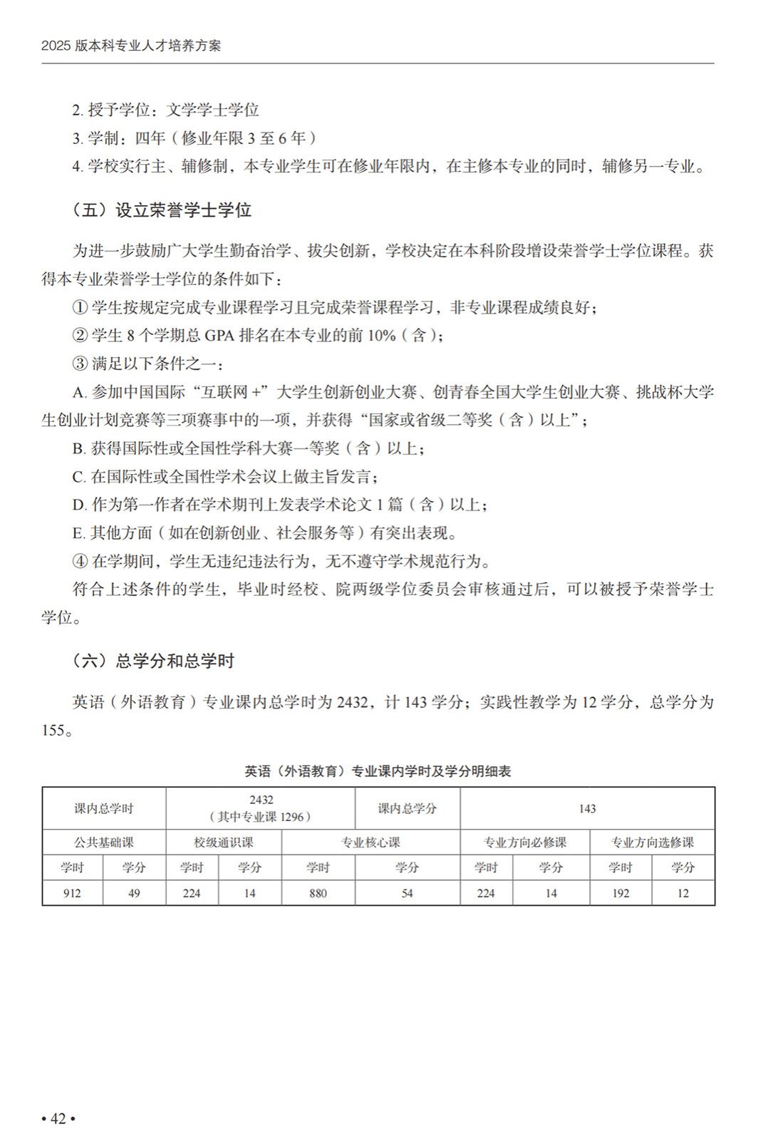 英语(外语教育)专业本科培养方案(2025)