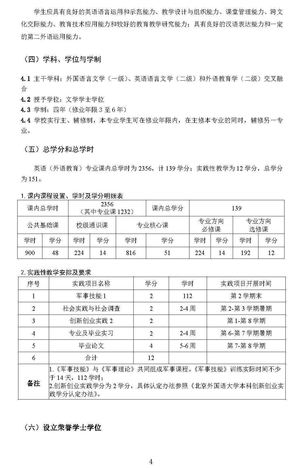 太阳集团tyc9728英语(外语教育)专业本科培养方案(2024)