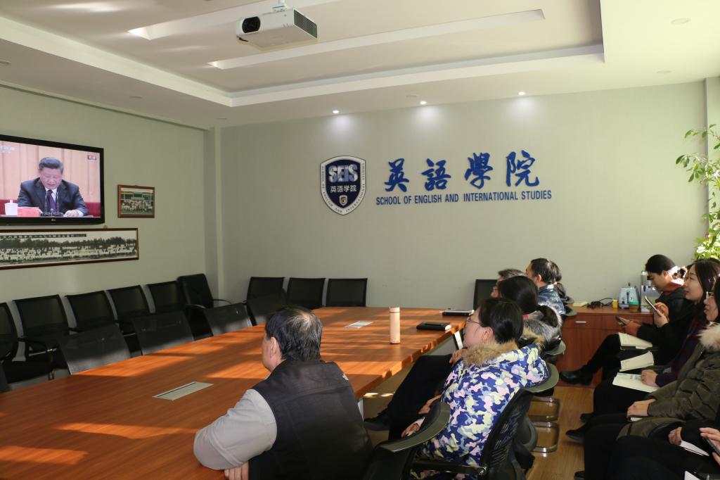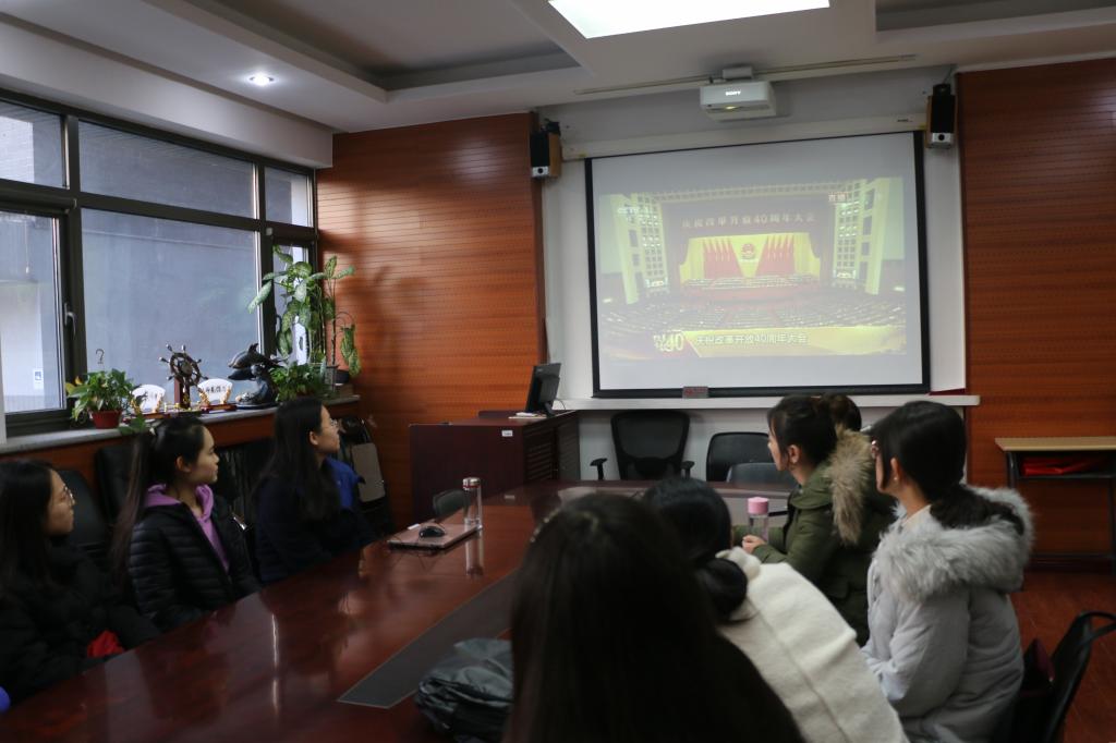 12月18日上午10点,太阳集团tyc9728党总支组织师生代表集体观看庆祝改革开放40周年大会现场直播,学生党员代表在115会议室、教职工代表在111会议室进行集体观看。党总支书记路兴以及师生党支部书记参加。
