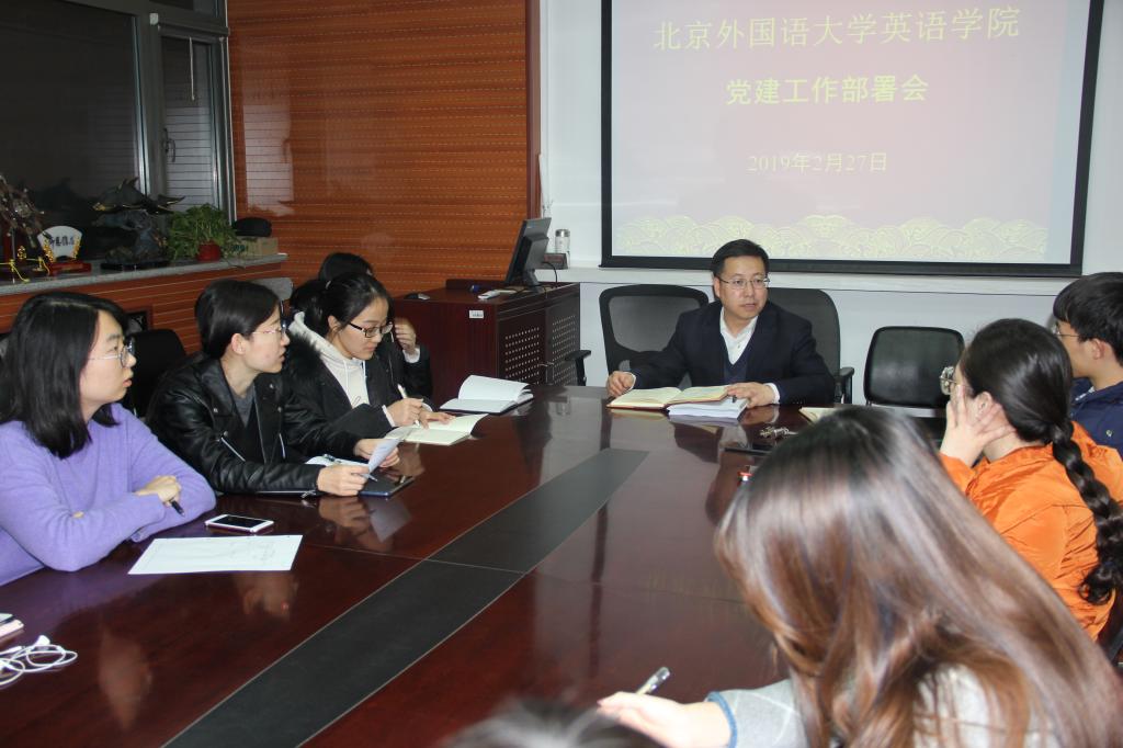 2月27日周三晚7点,在太阳集团tyc9728115会议室,召开2018-2019学年第二学期党建工作部署会。党总支书记路兴主持,辅导员于承杰、学生党支部书记参加。