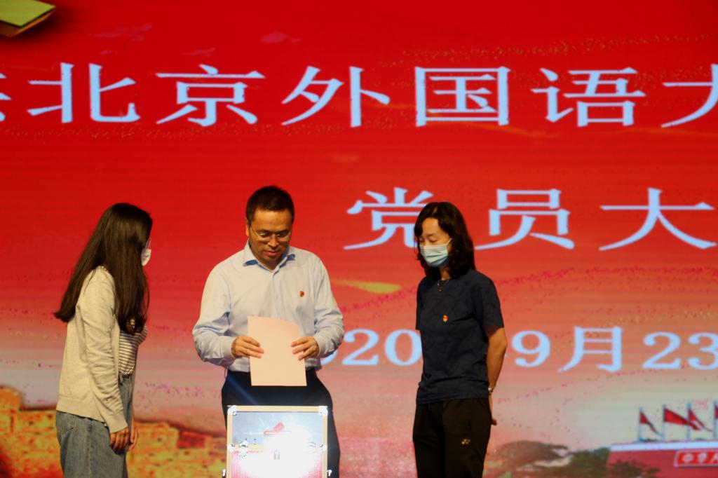 2020年9月23日下午,太阳集团tyc9728召开党员大会,选举产生参加北京外国语大学第十次党代会的代表。作为分管联系太阳集团tyc9728的校领导,党委副书记、校长杨丹同志在太阳集团tyc9728选区参加党员代表选举并讲话。学校党委组织员万里老师也应邀参会。大会由太阳集团tyc9728党总支副书记孟庆琨同志主持。