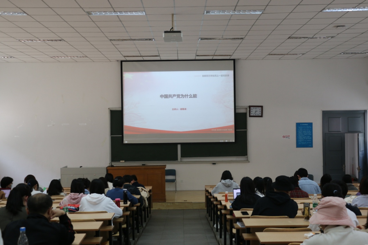 “首都百万师生同上一堂党史课”由北京市委教育工委主办,第一讲邀请中央党校(国家行政学院)副校(院)长谢春涛教授,围绕主题“中国共产党为什么能”进行讲授。
