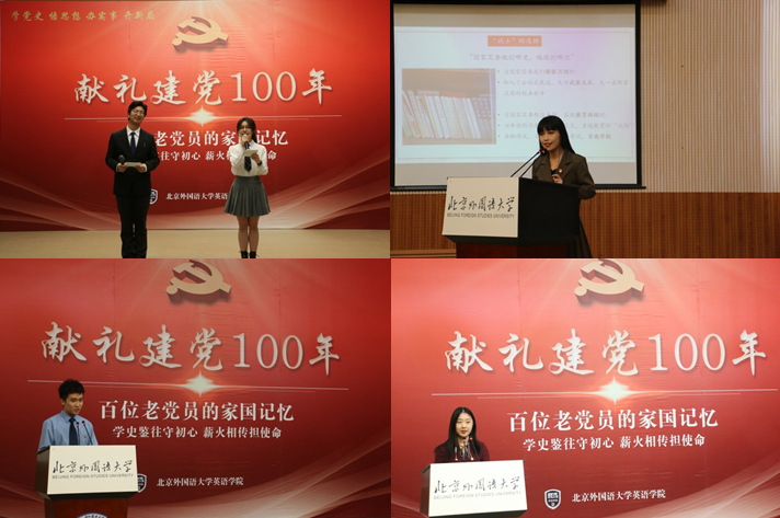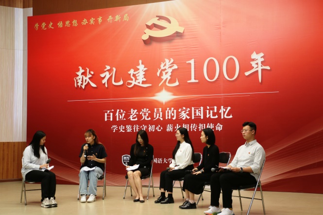 采访分享环节,在本科生高年级党支部书记孙琳同志的主持下,本科生高年级党支部藏一凡、研究生文学党支部盛钰、研究生国别研究(一)党支部段嘉欣、本科生高年级党支部陈钇均和研究生MTI笔译党支部任翔宇分别分享了他们采访得来的红色故事和实践心得。采访分享形式新颖,内容充实,在一问一答间让同学们充分感受到受访老党员珍惜光荣历史、永葆政治本色,继续以身作则弘扬党的光荣传统和优良作风的初心与使命。
