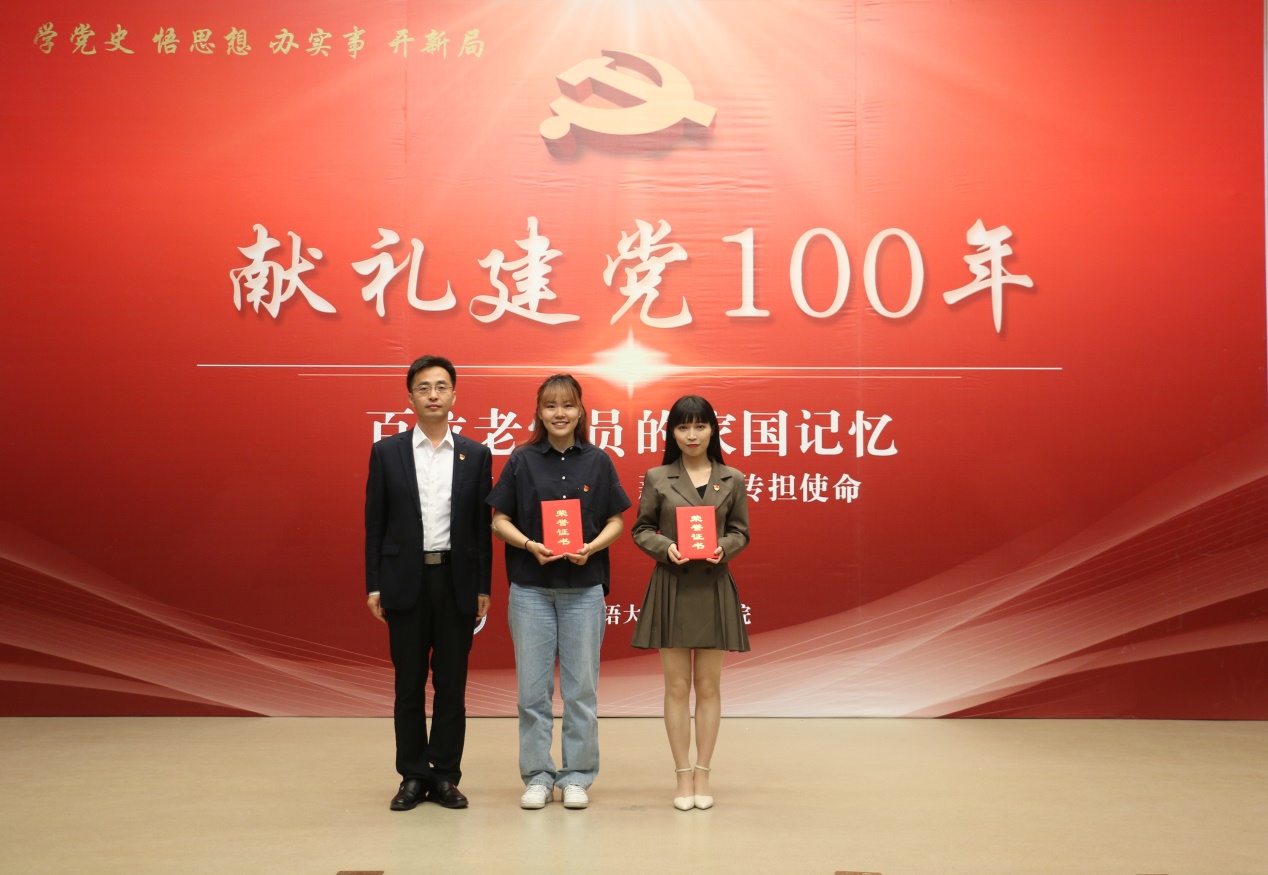 分享会最后,出席分享会的领导和嘉宾为本科生党支部和研究生国别研究(二)党支部颁发了“优秀组织奖”;为获得特等奖(2名)、一等奖(5名)、二等奖(11名)、三等奖(17名)、优秀奖(22名)的学生党员和入党积极分子颁发了荣誉证书。