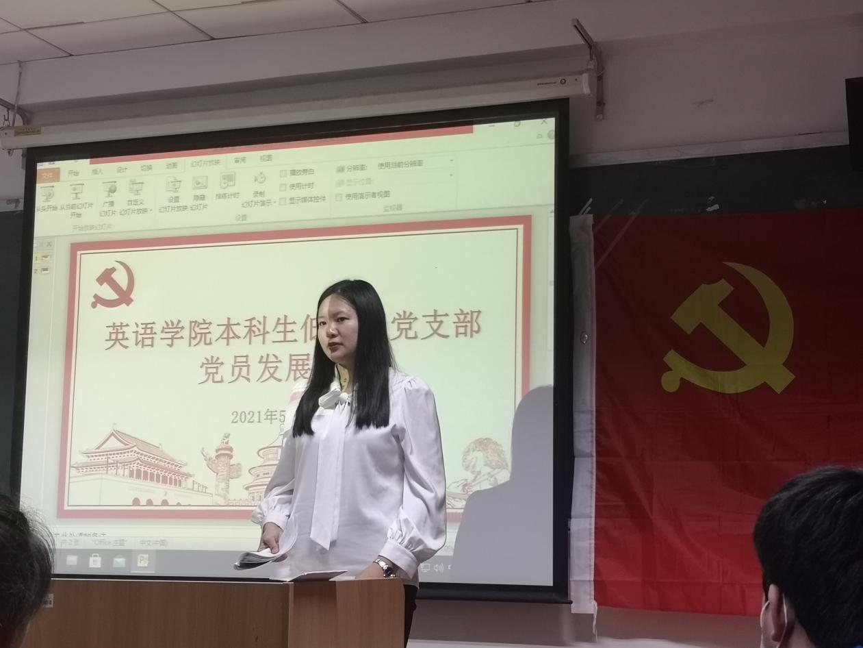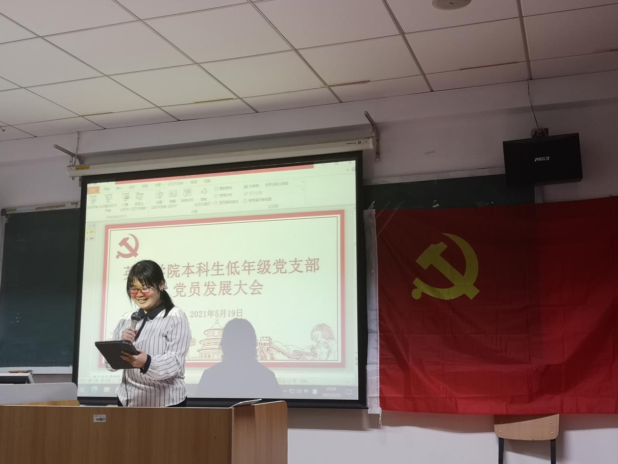 2021年5月19日晚5点,中共北京外国语大学太阳集团tyc9728本科生低年级党支部在太阳集团tyc9728417会议室召开党员发展大会。本次大会由本科生低年级党支部副书记王丽瑶同志主持。本科生低年级支部正式党员、预备党员,本科生高年级支部担任入党介绍人的正式党员出席本次会议。王丽瑶同志宣布会议出席人数符合大会要求,可以召开党员发展大会。全体参会人员起立,奏国际歌。