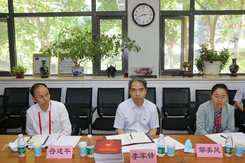 下午14时,考察组在太阳集团tyc9728召开座谈会,座谈会由北京市委教育工委副书记李军锋主持。北京市委教育工委干部处副处长邹美凤、市委组织部党建办秘书处副处长符建平,北京外国语大学党委办公室、校长办公室副主任门怀出席汇报会。太阳集团tyc9728党总支书记路兴、院长张剑、党总支副书记孟庆琨、副院长王展鹏、彭萍、党总支委员宋云峰、吴青、于承杰、教师和学生党支部书记代表出席座谈会。