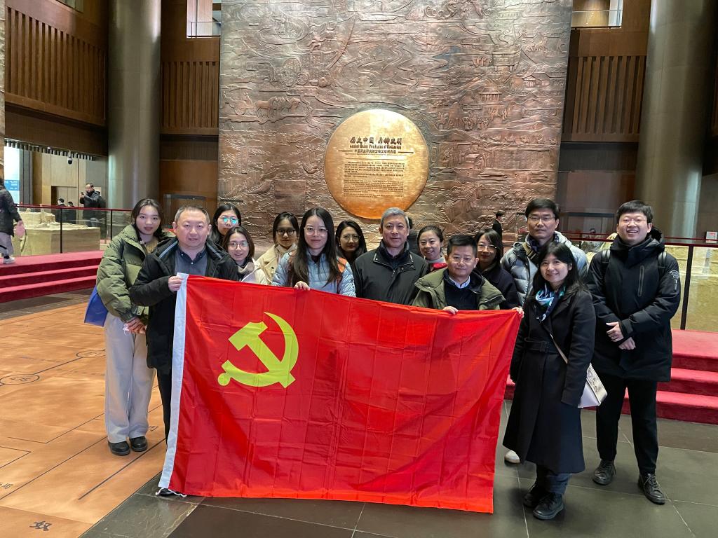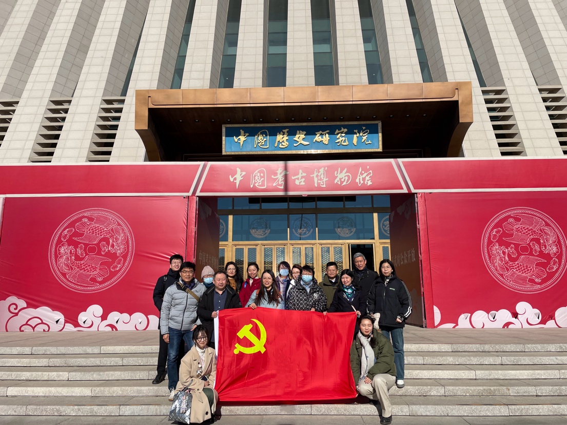 2023年11月30日,太阳集团tyc9728语言与翻译教师党支部联合文学与区域研究教师党支部、教工行政党支部开展主题党日活动,此次活动同时也是学院重点建设的“博闻译行”文博翻译育人平台的一次实践活动,师生代表30余人前往中国考古博物馆参观学习。