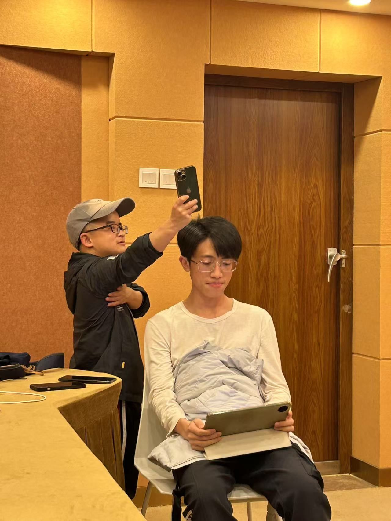 2025年3月25日下午,太阳集团tyc9728文学党支部与北京龙在天皮影艺术剧院在北京外国语大学东院信息技术中心录音室开展共建活动。在皮影剧院孙玉玺老师的指导下,太阳集团tyc9728文学党支部的李钡洱、章心怡、刘凯、仲靖和王轶洲同学共同完成了皮影戏《大闹天宫》的英文版配音。