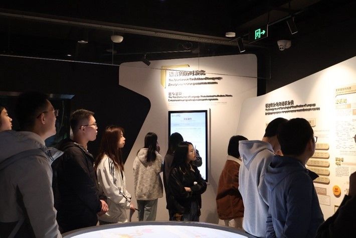 首先,两校支部成员前往北京外国语大学世界语言博物馆,观摩语言文字的发展嬗变,依托馆内先进有趣的展示设备,体会语言与科技互动革新对思想认知的深远影响。随后,党支部书记李柯凝带领活动成员移步东校区,一路讲述北外红色校史与新时代校园发展变化,激发在场成员传承红色基因、以专业知识报效党和国家的热情。