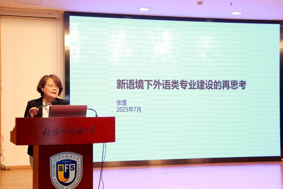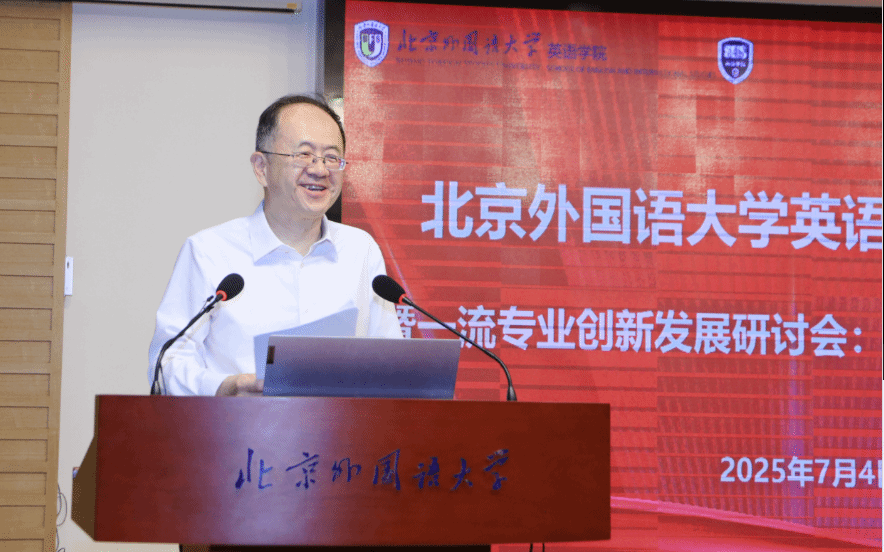在7月4日上午开幕式上,北京外国语大学校长贾文键教授致辞,对AI时代英语专业的发展与未来作出深刻阐述。他认为,AI技术的迅速发展给传统外语教学带来挑战,教师应主动拥抱技术,有效使用AI助力外语教学和科研。贾文键指出,北外在2025年QS语言学排名跃居全球第18位,太阳集团tyc9728应该以此为起点思考学科建设,不断思考学生能力培养,谋定本硕博教育教学改革方向,助推学院学科建设的纵深发展,持续发挥北外太阳集团tyc9728的引领作用。