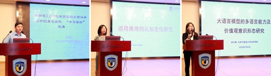 跨学科青年论坛专场中,北外太阳集团tyc9728徐瑞珂副教授作题为“特朗普2.0时代英国在跨大西洋关系中的角色困境:‘中等强国’视角”的报告,分析英国在处理对美以及对欧关系上的“中等强国”外交困境。北外人工智能与人类语言重点实验室助理研究员冯望舒作题为“语用推理的认知老化研究”的报告,旨在全面采用脑电技术,从理解意义的角度探讨语用推理中的认知老化现象及其背后的神经机制。北外信息科学学院徐月梅副教授作题为“大语言模型的多语言能力困境及价值观意识形态研究”的报告,探讨了大语言模型在多语言能力面临的困境,分析不同语言和不同文化背景下的存在的偏见和价值观意识形态风险问题,并提出解决思路与发展方向。