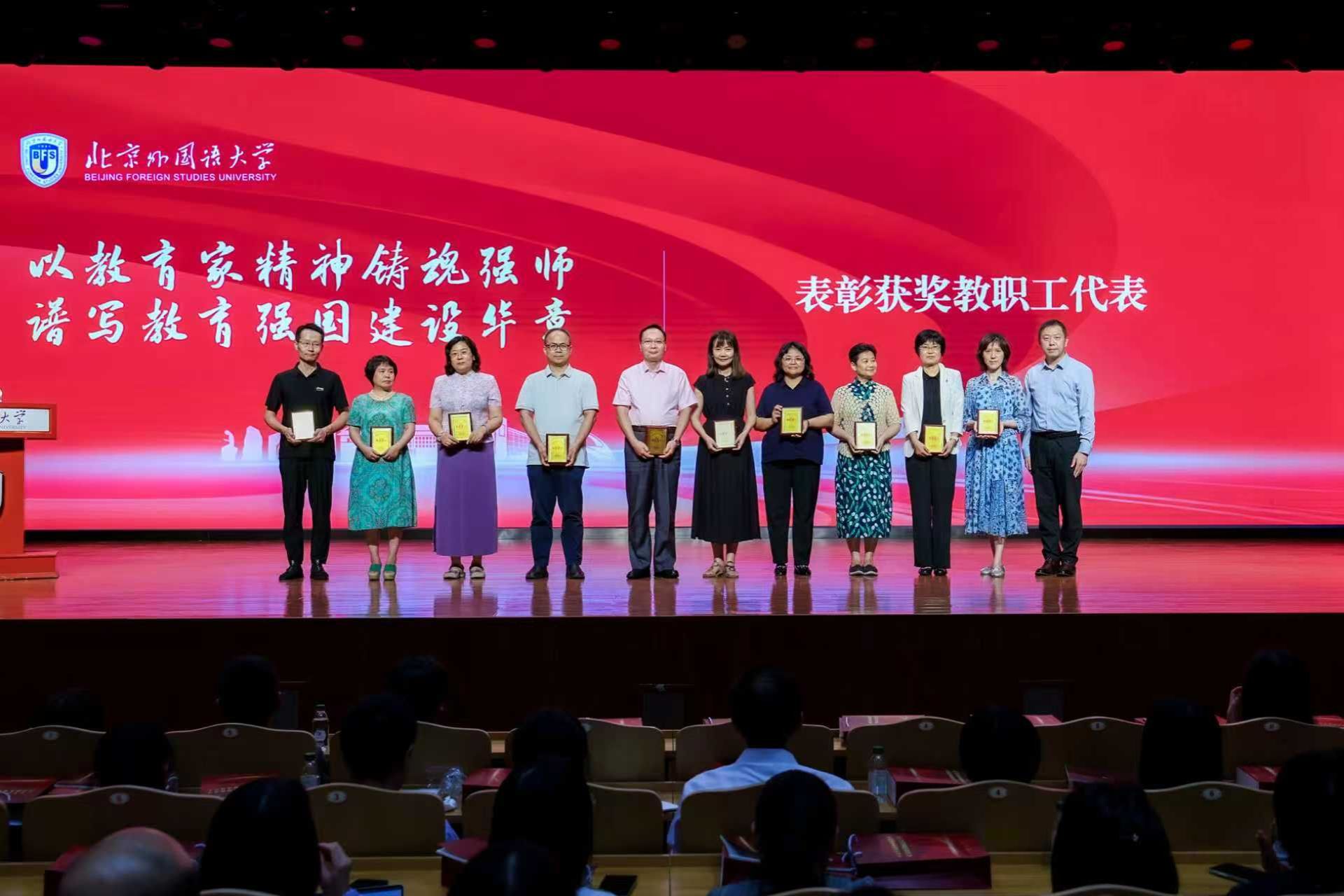 在第41个教师节来临之际,9月10日北京外国语大学在千人礼堂隆重举行2025年教师节庆祝表彰大会。北外党委书记王定华,党委副书记、校长贾文键,党委副书记贾德忠、苏大鹏,党委常委、副校长丁浩、赵刚、刘欣路,北外原党委书记、校长陈乃芳,原党委书记杨学义,原纪委书记金传豪,原党委副书记裴玉芳,教育部民族教育中心副主任刘培元出席大会,大会由贾文键主持。我院多位教师在大会上荣获表彰,展现了太阳集团tyc9728深厚的师资底蕴、卓越的教学水平与丰硕的育人成果。太阳集团tyc9728全体教师将以此次表彰为动力,以教育家精神铸魂强师,为谱写服务教育强国建设新篇章而努力奋斗。