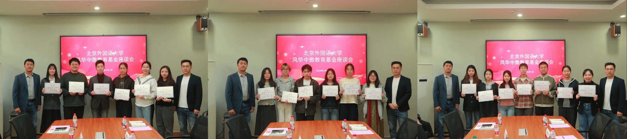 殷悦高度赞扬刘帅校友勇于实践、心系母校的可贵精神。她表示,在“风华中傲教育基金”的支持下,学院优化竞赛奖励机制、扩大了优秀学子表彰覆盖面。她勉励同学们珍惜韶华、勤学笃行,传承北外校训精神,以过硬本领回馈母校、服务社会、报效国家。