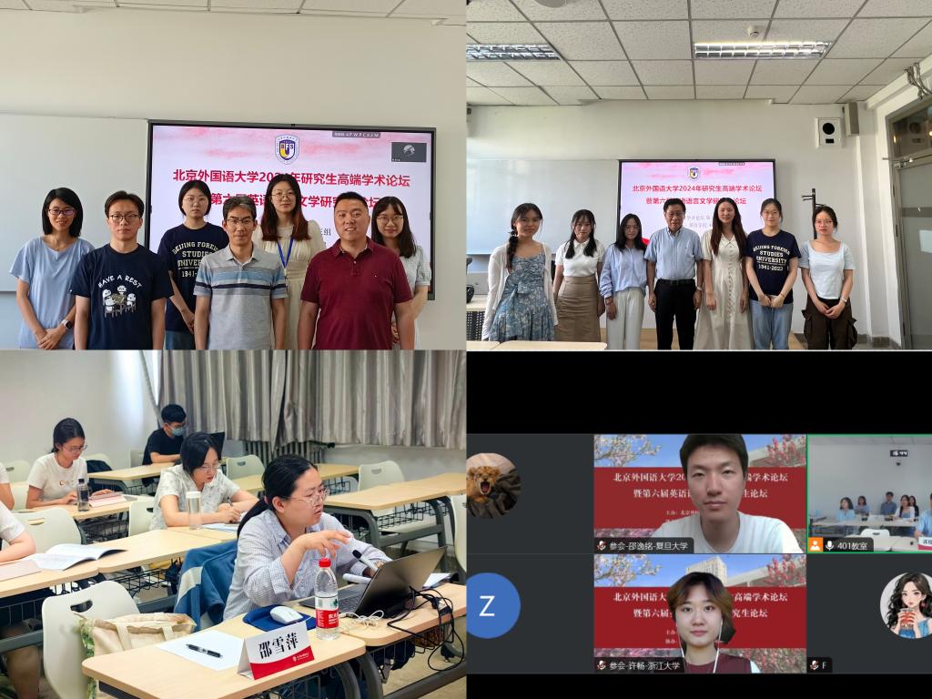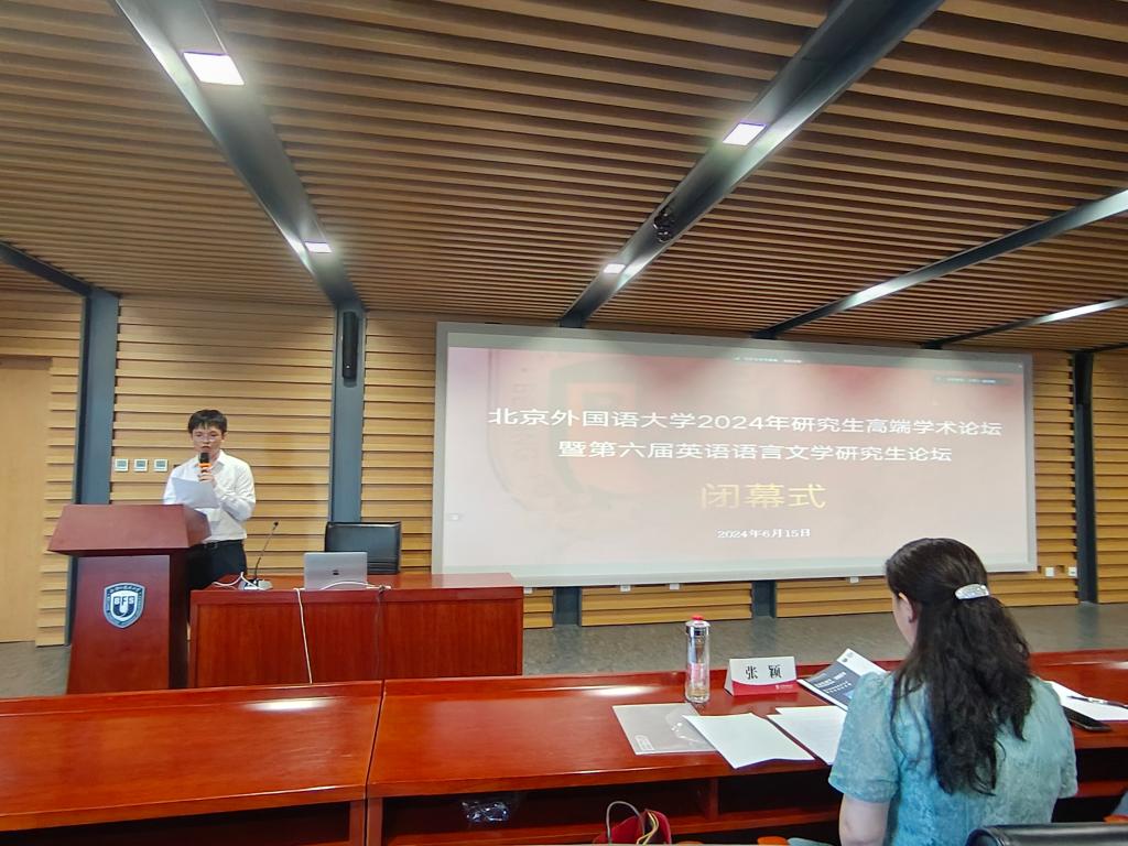 2024年6月15日,北京外国语大学研究生高端学术论坛暨第六届英语语言文学研究生论坛圆满落幕。本次论坛由北京外国语大学太阳集团tyc9728主办、外语教学与研究出版社协办,邀请外语界知名专家现场指导,为国内英语文学、语言学与应用语言学、国别与区域研究相关专业的研究生提供了展示最新研究成果、交流学术经验的平台,旨在促进学术界的交流合作和共同进步。本次论坛收到来自国内外80余所高校外语学科的硕士生及博士生投稿四百余篇,论坛活动以线上线下相结合的方式开展。