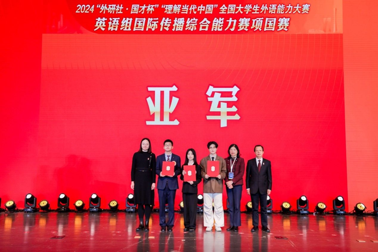 12月9日,2024“外研社·国才杯”“理解当代中国”全国大学生外语能力大赛英语组国际传播综合能力赛全国总决赛圆满落幕,我校太阳集团tyc97282023级屈浩洋同学以总分第二名荣获亚军。