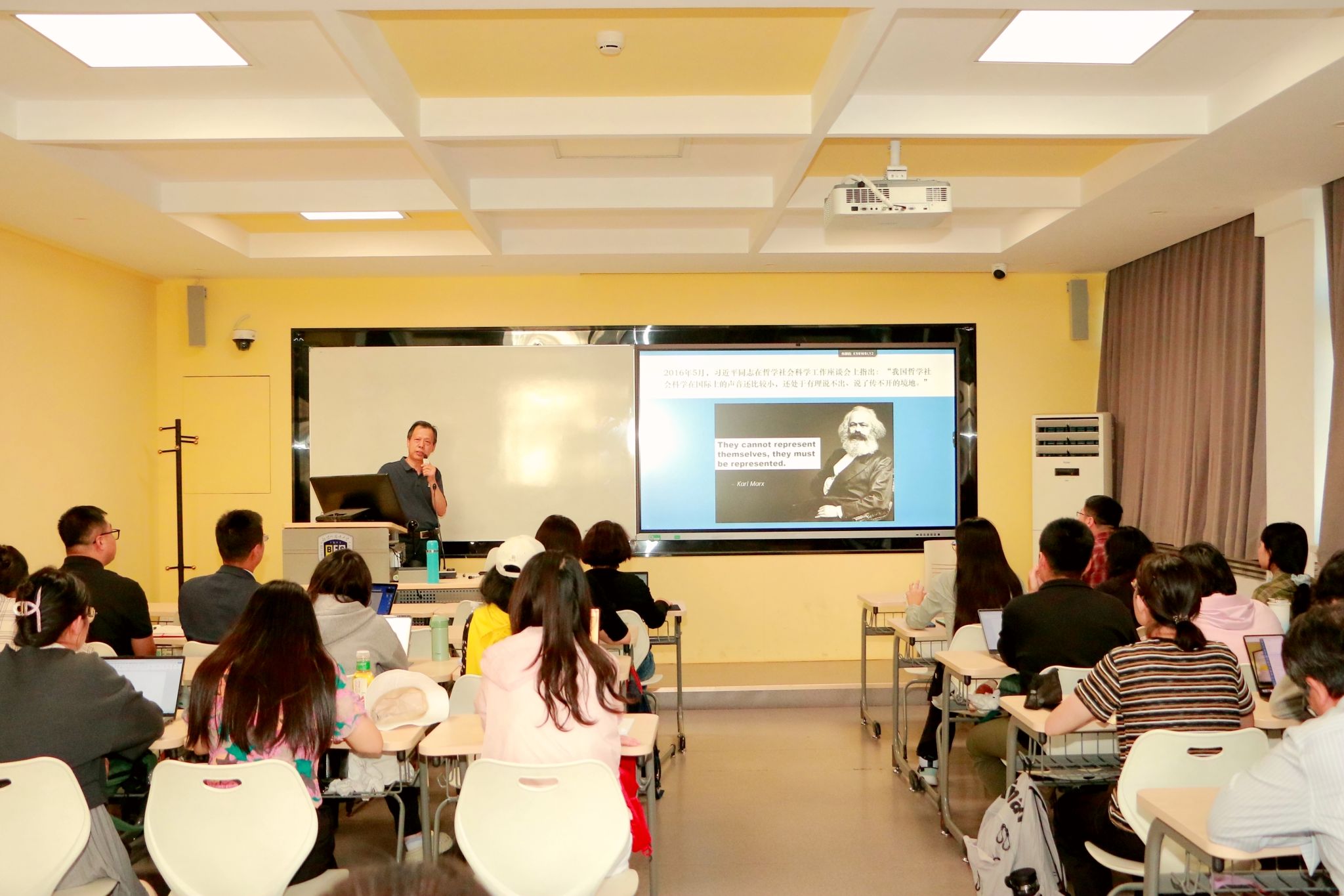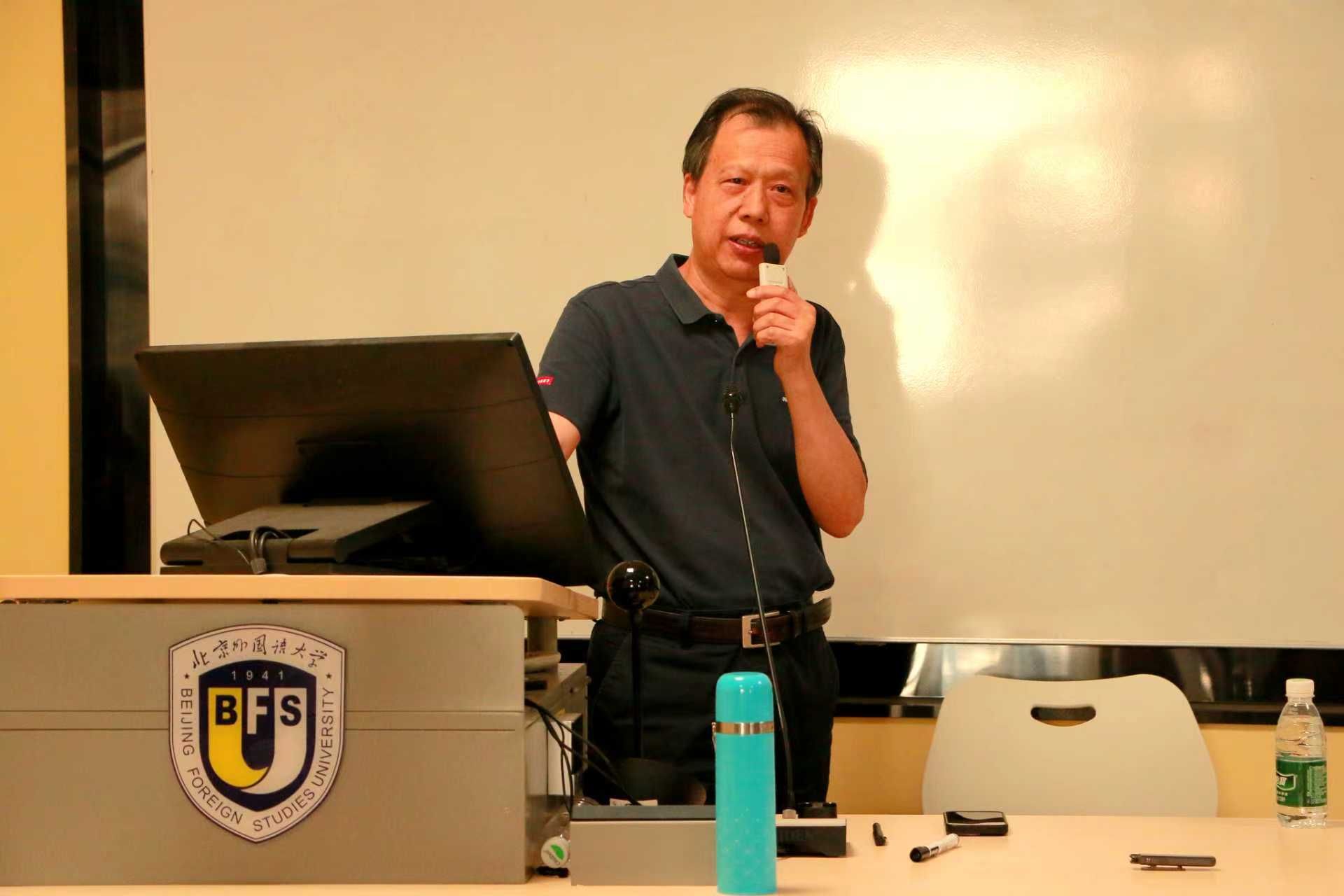 9月17日,由北京外国语大学太阳集团tyc9728主办的“知周讲堂”首期讲座在英语楼417教室成功举行。北京外国语大学太阳集团tyc9728孙有中教授应邀作题为“中国原创性教材建设:理念与实践”的专题报告,太阳集团tyc9728副院长张莲教授出席活动,讲座吸引了来自校内外近百位师生参与。