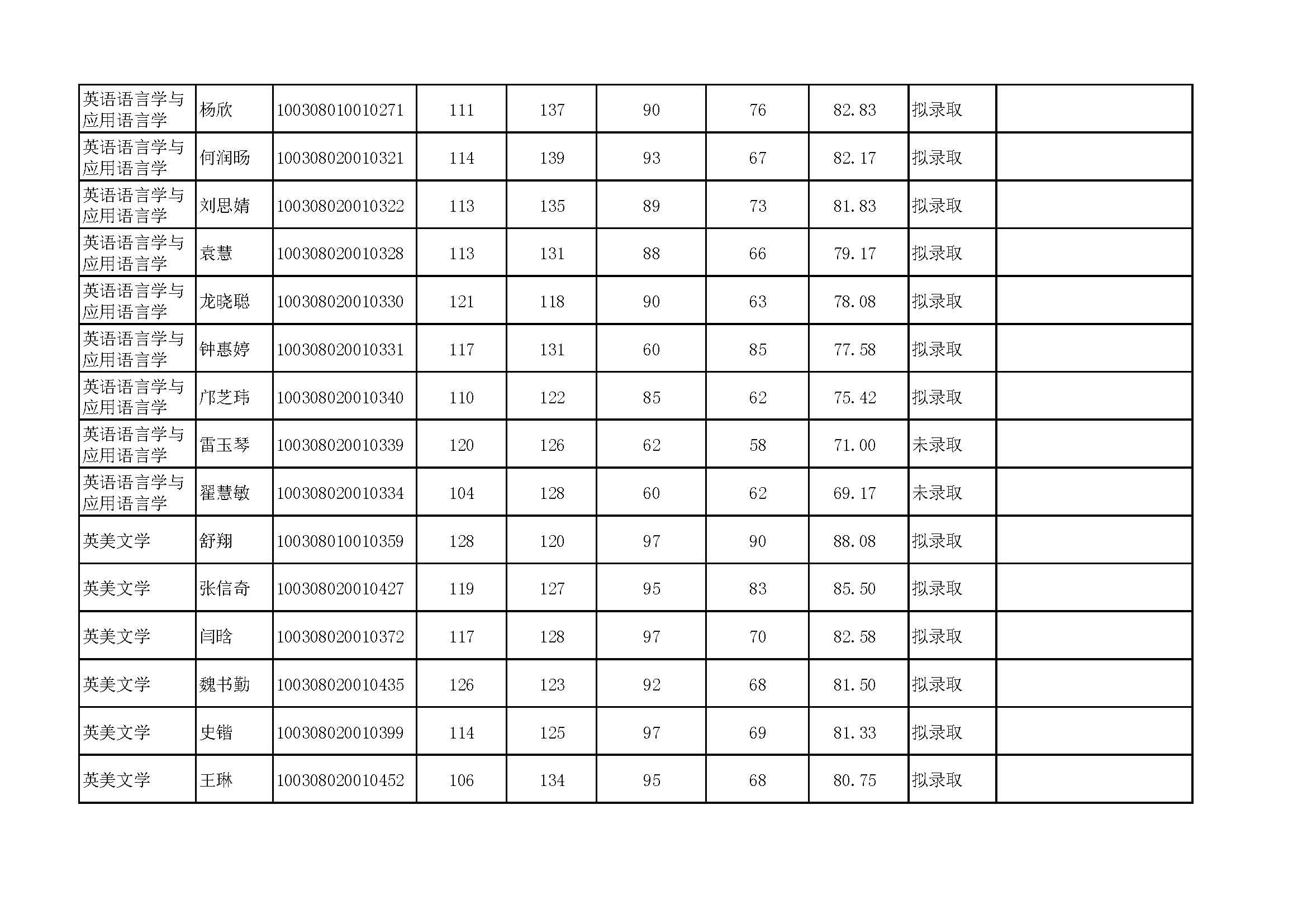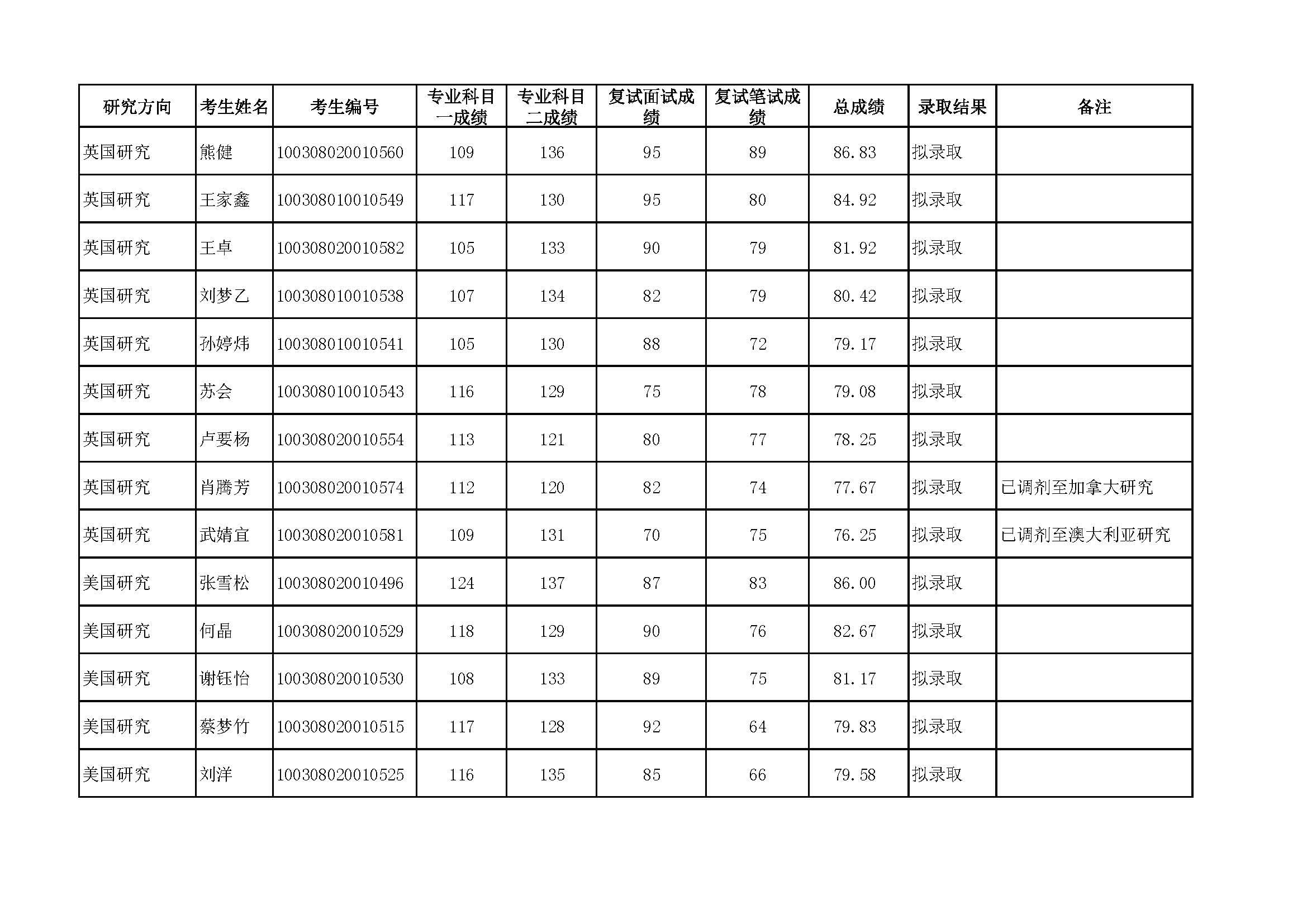 太阳集团tyc97282018年硕士研究生复试结果及拟录取名单