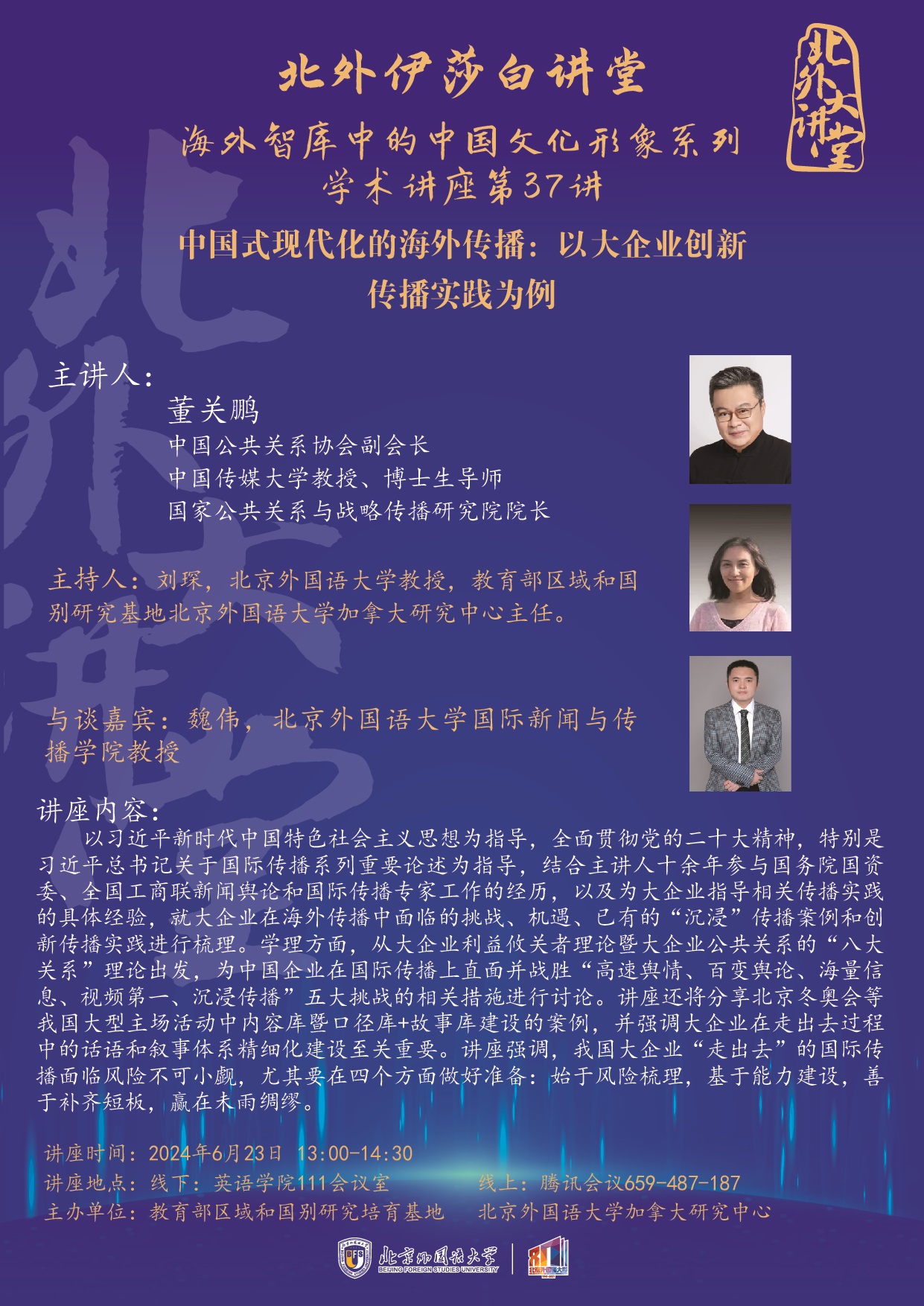 线下讲座地点:北外太阳集团tyc9728楼111会议室