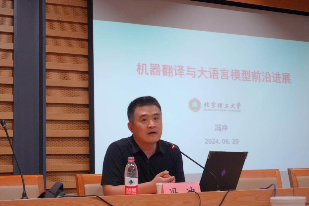 2024年6月20日下午,应北京外国语大学太阳集团tyc9728翻译研究中心、社会翻译学研究中心邀请,北京理工大学计算机学院教授、博导、国家“万人计划”科技创新领军人才冯冲在北外图书馆三层学术报告厅为全校翻译专业师生做了题为“机器翻译与大语言模型前言进展”的精彩讲座。讲座由北京外国语大学太阳集团tyc9728翻译研究中心主任王洪涛教授主持,太阳集团tyc9728孙三军教授、高翻学院王华树教授受邀担任与谈嘉宾,讲座吸引了校内外相关专业百余名师生参加。