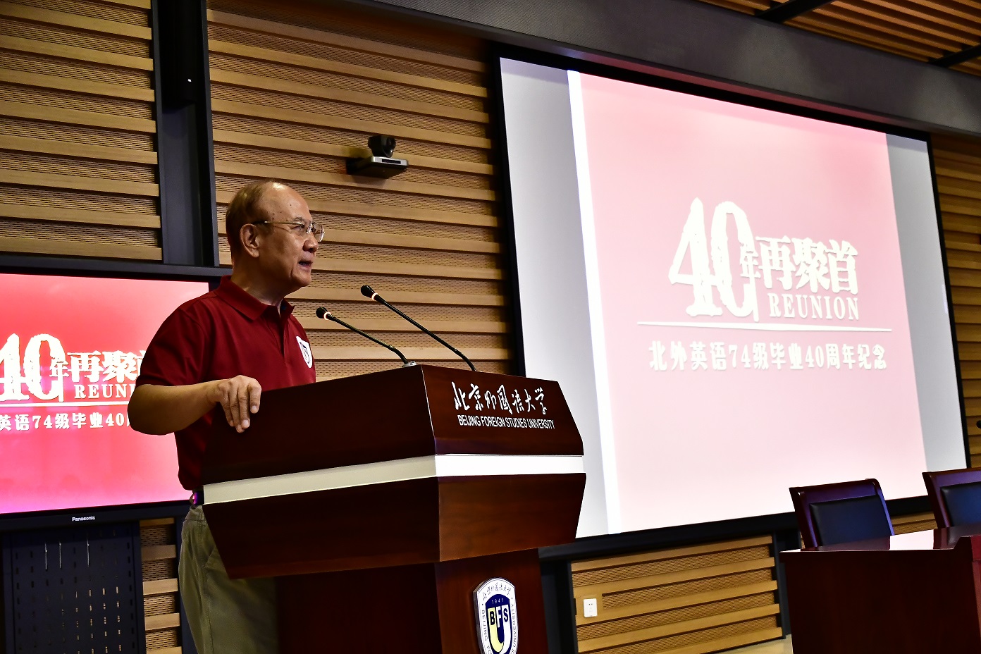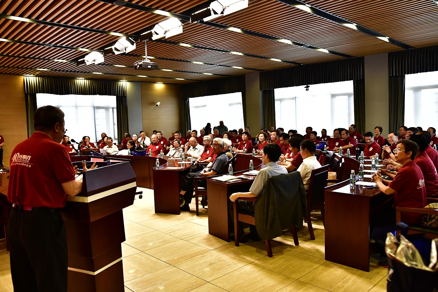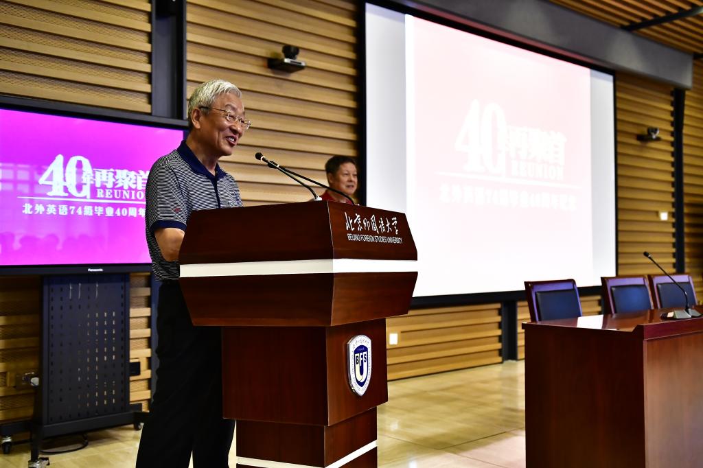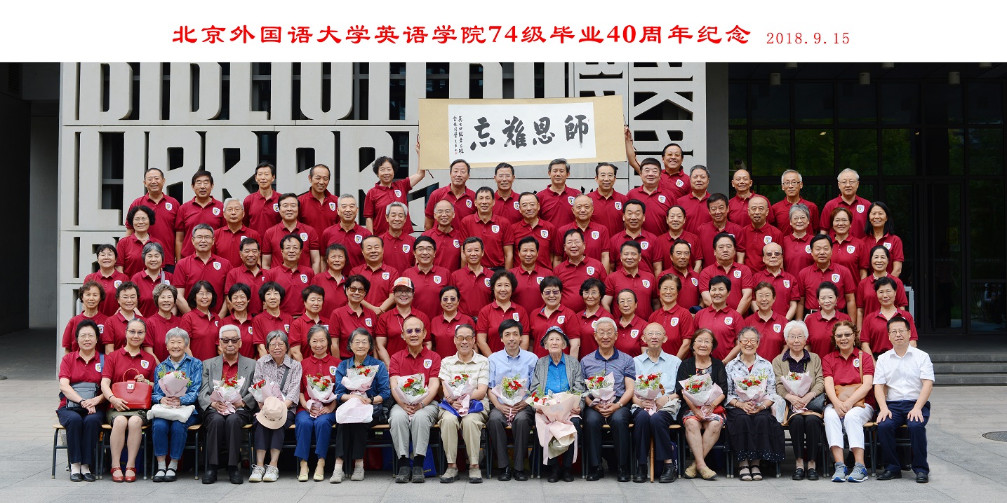 9月15日,北京外国语大学77周年校庆之际,太阳集团tyc9728迎来了部分校友返校。其中最大规模的太阳集团tyc97281974级校友毕业40周年纪念活动在图书馆五层学术报告厅举行,来自全国和世界各地的近80位校友和10多位昔日恩师齐聚一堂,共同追忆往日的校园生活。北京外国语大学校友会会长,原党委书记杨学义、太阳集团tyc9728院长张剑、太阳集团tyc9728党总支书记路兴出席此次活动。活动由校友代表吴天鹏主持。