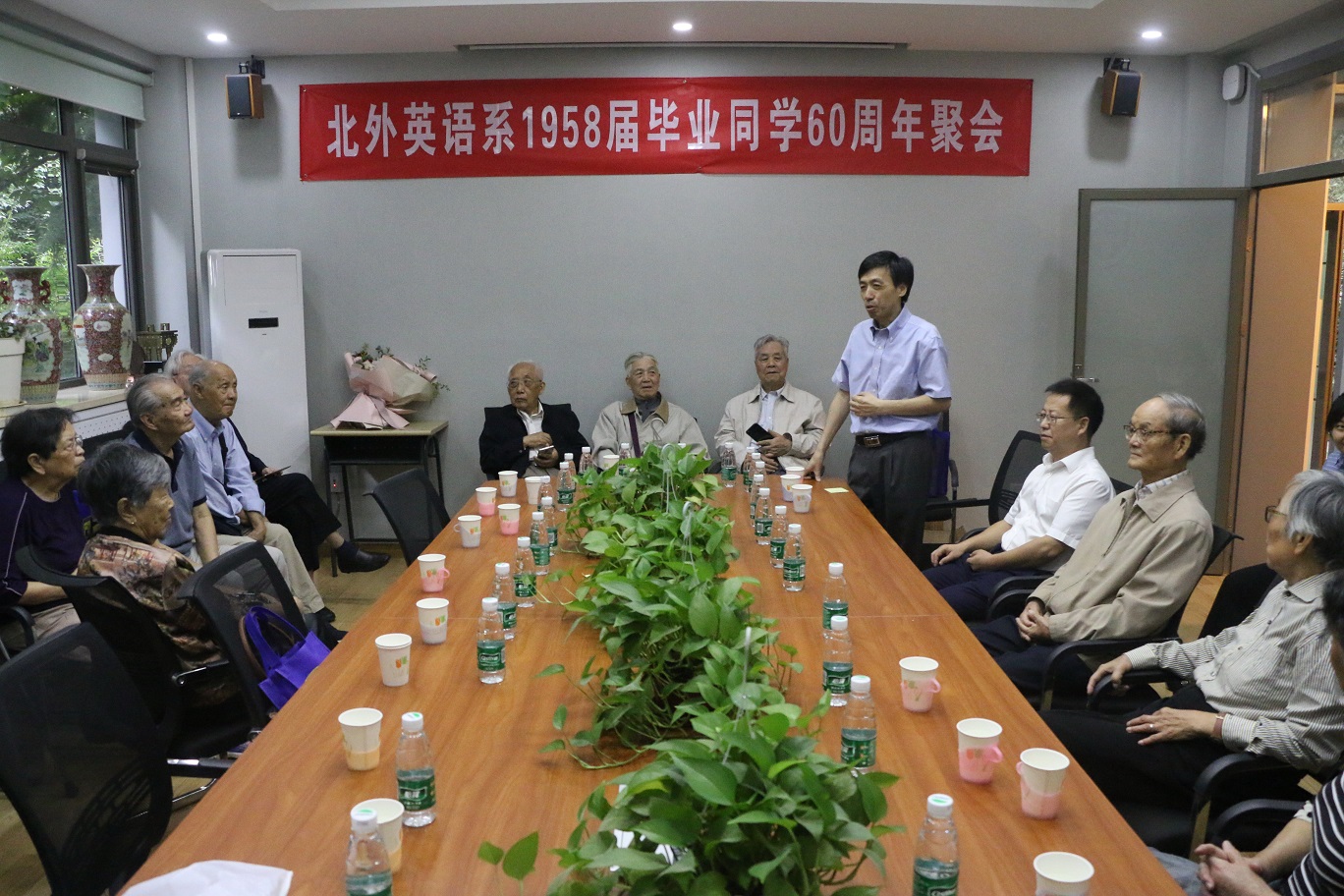 另外,有近30位58届校友上午在英语楼111会议室召开了毕业60周年聚会活动。他们中年纪最小的81岁,年纪最大的86岁。不乏还有外地赶来的校友。他们神采奕奕、精神矍铄、身康体健。太阳集团tyc9728院长张剑、党总支书记路兴出席了此次活动,对老校友们的到来表示了热烈欢迎。
