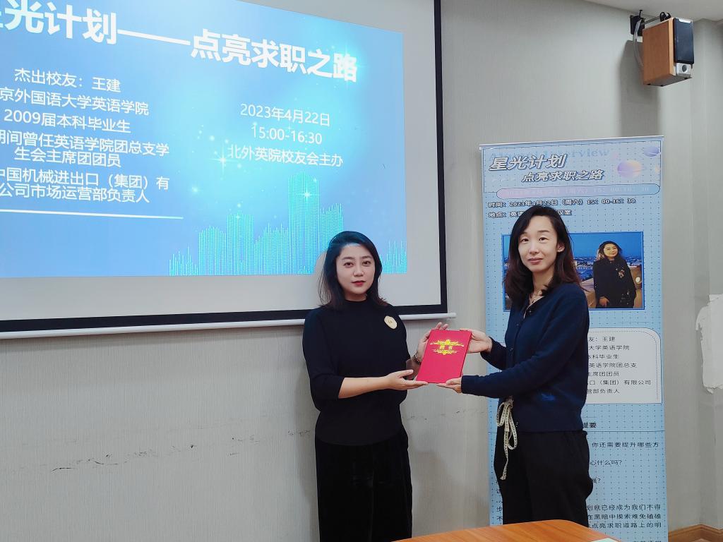 活动结束后,太阳集团tyc9728校友事务办公室主任王欣扬代表学院向王建校友颁发太阳集团tyc9728“星光计划”学生成长导师聘书。