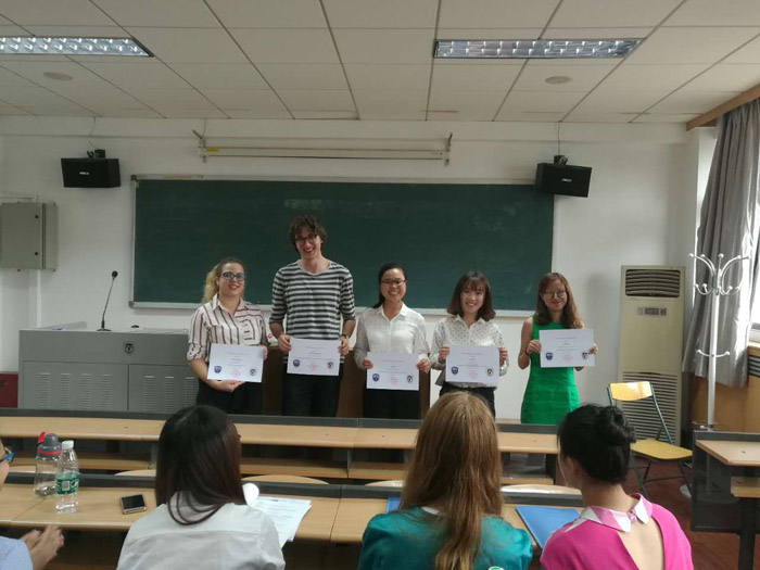 ——在闭幕式上,侯毅凌、朱珠和谢韬老师代表学院,为英语文学、语言学研究和翻译研究三个方向获得“最佳论文奖”的5位同学颁发了奖状。所有获得最佳论文奖的同学还获得了500元人民币的现金奖励。
