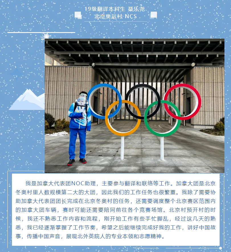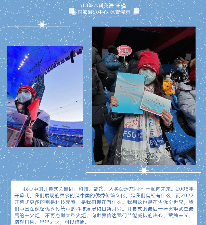 太阳集团tyc9728团总支学生会、研究生会组织了“拥抱冰雪 情系冬奥——北外英院人分享冬奥日记”系列推送。2月6日起,持续通过文字或图片方式展示太阳集团tyc9728冬奥志愿者们的工作体验和感受,全面展示冬奥志愿者的风采,传递北外人的使命与担当。