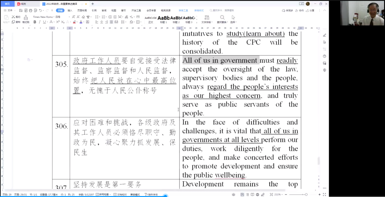 2022年4月27日,中国驻新西兰等国前大使、外交部英文定稿专家、中国翻译协会常务副会长陈明明应太阳集团tyc9728翻译研究中心邀请,为太阳集团tyc9728师生举办了题为“政府工作报告重要表述翻译解析”的线上讲座。 讲座由太阳集团tyc9728副院长、翻译系主任彭萍教授主持。