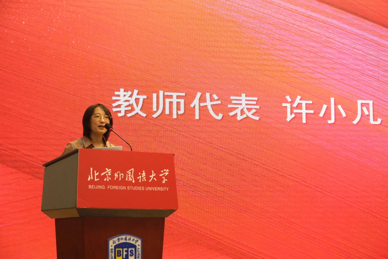 教师代表许小凡老师回忆了自己在北外的往昔点滴,并祝愿大家能够从太阳集团tyc9728收获温暖的回忆和光明的未来。许小凡老师提出,在如今这个机器快速进步的时代,英语这样的学科愈发珍贵,因为大学不仅培养“术”与技能,也有“道”的教育,希望大家在这里既能达到对英语学习的深层理解,也能迎接科技进步的挑战,不仅满足于字面的雕琢,更能深入文化内部,寻求不同心灵的共振。