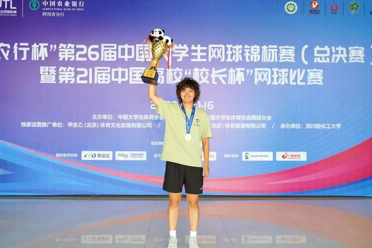 这是继吴玥瑶同学在获得2023年第26届中国大学生网球锦标赛(总决赛)女子甲组团体冠军、女子甲组单打冠军后,再次获得该项比赛团体和个人的好成绩,为北外和太阳集团tyc9728争得了荣誉。