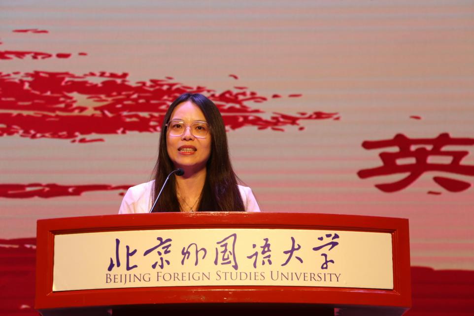 随后,教师代表王颖冲老师发表讲话。她认为,学习外语不仅让我们能够跨越语言的障碍,还能够与来自不同文化背景的人进行交流,理解并感受不同的文化,从而建立思想和情感的联系。她勉励新生们要夯实外语基础,超越语言本身,积极应对时代变革,勇于承担历史和家国使命。