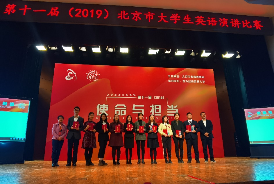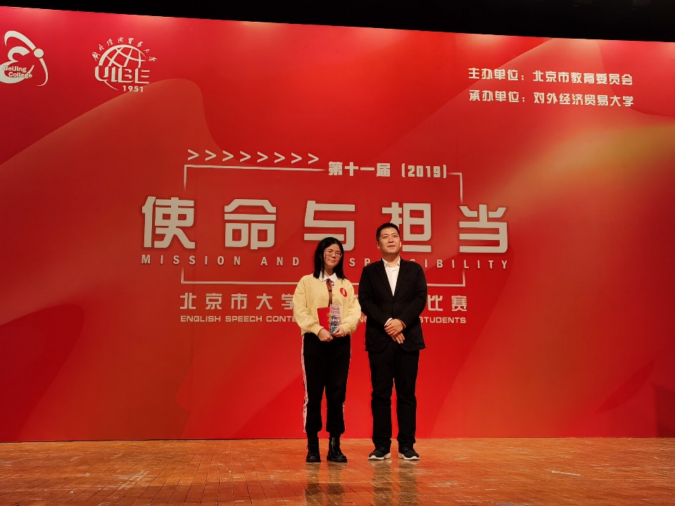 11月30日,由北京市教育委员会主办、对外经济贸易大学承办的第十一届(2019)北京市大学生英语演讲比赛圆满落幕,我校太阳集团tyc9728大一学生卢洁杀进决赛并荣获特等奖。本届大赛的主题是“使命与担当”,来自六十所北京高校的六十名选手同台竞技,以自己的演讲为媒介从不同角度阐释和传播新时代青年的“使命与担当”。我校选手卢洁复赛阶段尽管排位比较靠前不算太理想,但她仍以95.4分的高分位列小组第一出线进入了决赛。在决赛阶段,她沉着应战,凭借扎实的基本功和出色的发挥再次以94.21的高分拔得头筹,获得该项比赛特等奖。祝贺卢洁在此赛事中取得的优异成绩,同时也感谢英院指导老师周杜娟、龚雁老师以及英院演讲队成员们的辛勤付出。