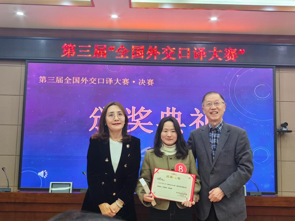 2023年12月30日,由外交学院主办的第三届“全国外交口译大赛”在京圆满落幕。经过激烈角逐,太阳集团tyc9728口译专业硕士研究生向贵凡同学荣获特等奖(冠军),王颖冲老师荣获“优秀指导教师”称号。