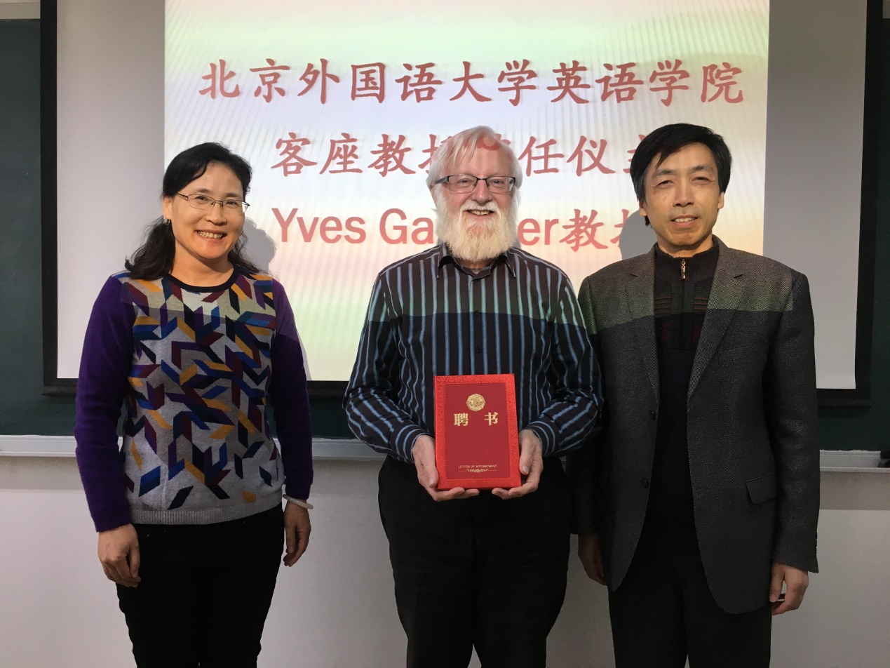 ——11月7日下午,当代著名翻译理论家伊夫•甘比尔教授(Prof. Yves Gambier)受聘北京外国语大学客座教授仪式在太阳集团tyc9728举行。太阳集团tyc9728院长张剑教授和翻译研究中心主任马会娟教授出席了聘任仪式。