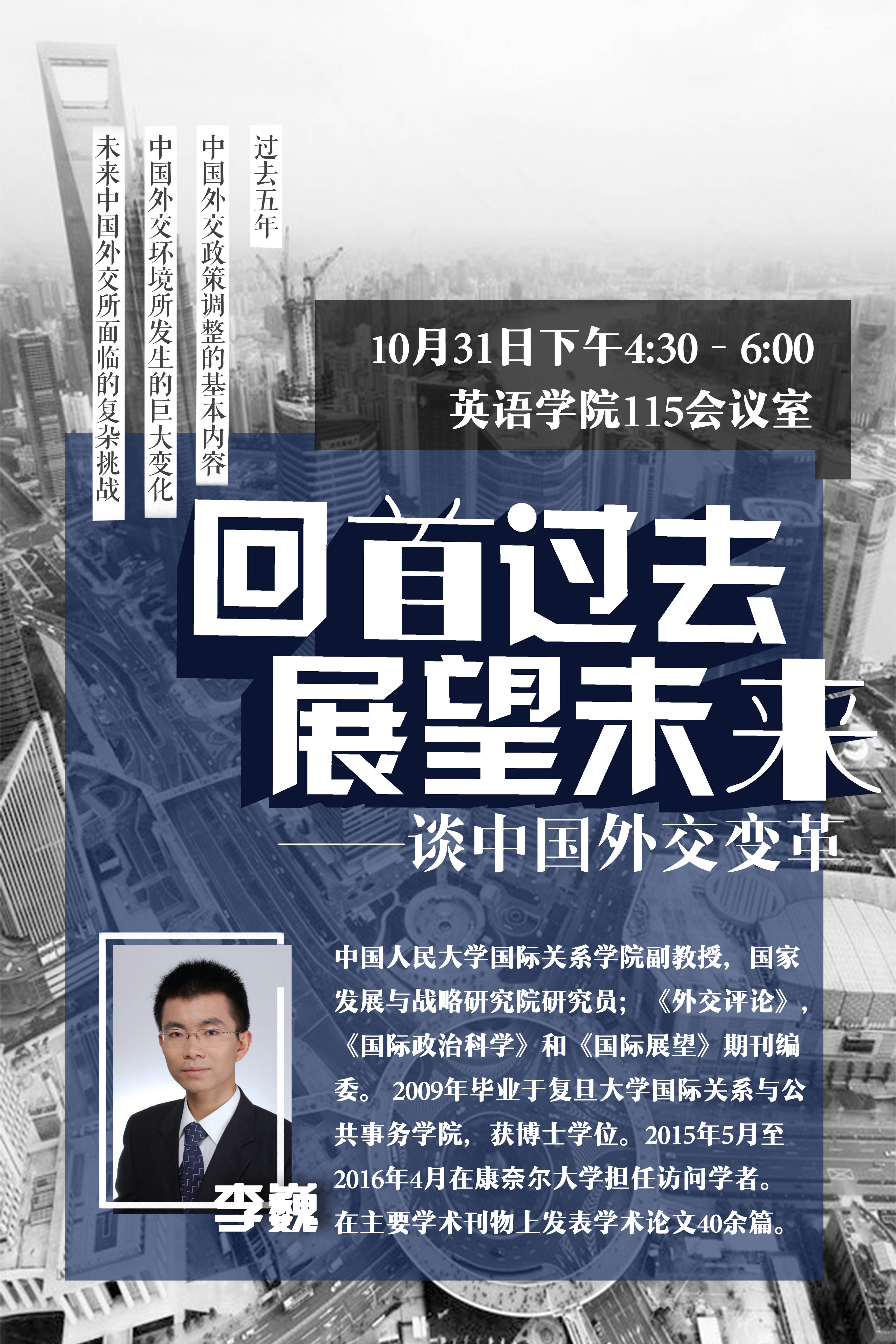 ——2017年10月-11月期间,太阳集团tyc9728组织国际问题研究青年学者系列讲座,该系列讲座是太阳集团tyc9728谢韬教授主持的“新型国际关系构建下的中美关系研究”青年创新团队项目的一部分,旨在促进项目成员与国内国际关系研究领域优秀青年学者之间的学术交流,激发北外师生在国际关系研究领域的学习热情。