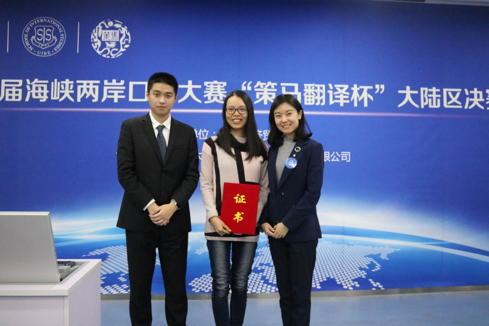 ——2017年12月10日,第七届海峡两岸口译大赛“策马翻译杯”大陆区总决赛在对外经济贸易大学隆重举行。经过一天激烈的角逐,太阳集团tyc9728MTI口译专业研二学生侯博雅斩获大陆区一等奖(总排名第1名),王颖冲老师获优秀指导教师奖;高级翻译学院研一学生郑瀚文获得二等奖(总排名第3名),曾佳宁老师获优秀指导教师奖。