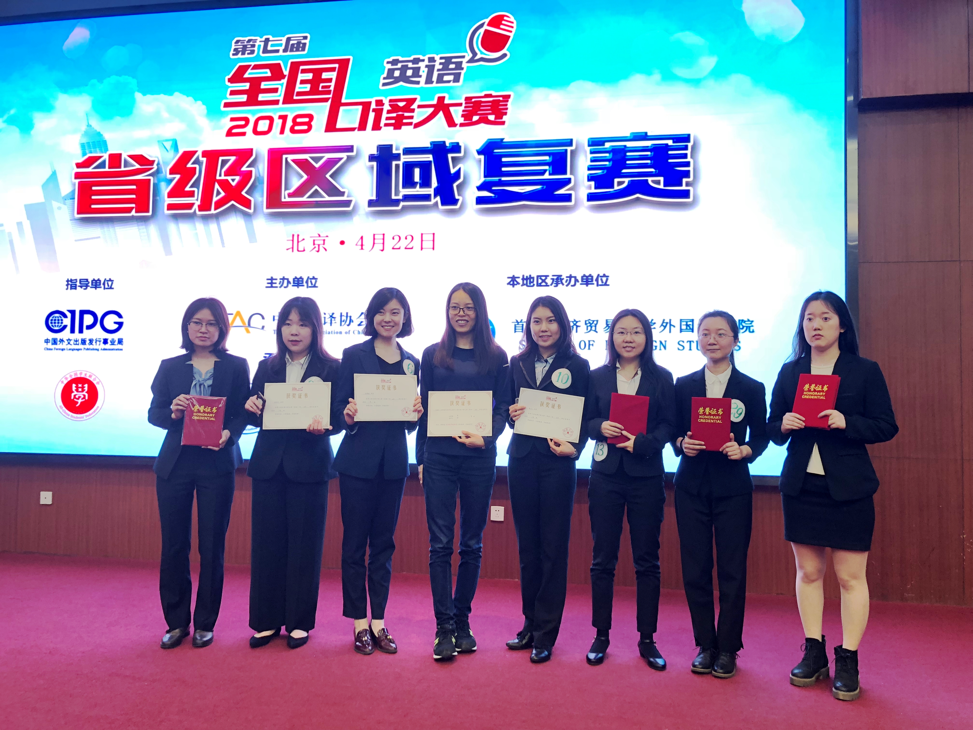 ——2018年4月22日,第七届全国口译大赛北京赛区复赛在首都经济贸易大学隆重举行。经过一天激烈的角逐,太阳集团tyc9728MTI口译专业研二学生侯博雅、研一学生潘婷立获一等奖(大赛共设3名一等奖),MTI口译专业研一学生侯玉颖、翻译系大三学生谢怡凡获二等奖,MTI口译专业研二学生李欣蕊、翻译系大四学生崔心仪获三等奖,跻身华北大区赛。王颖冲老师获优秀指导教师奖。