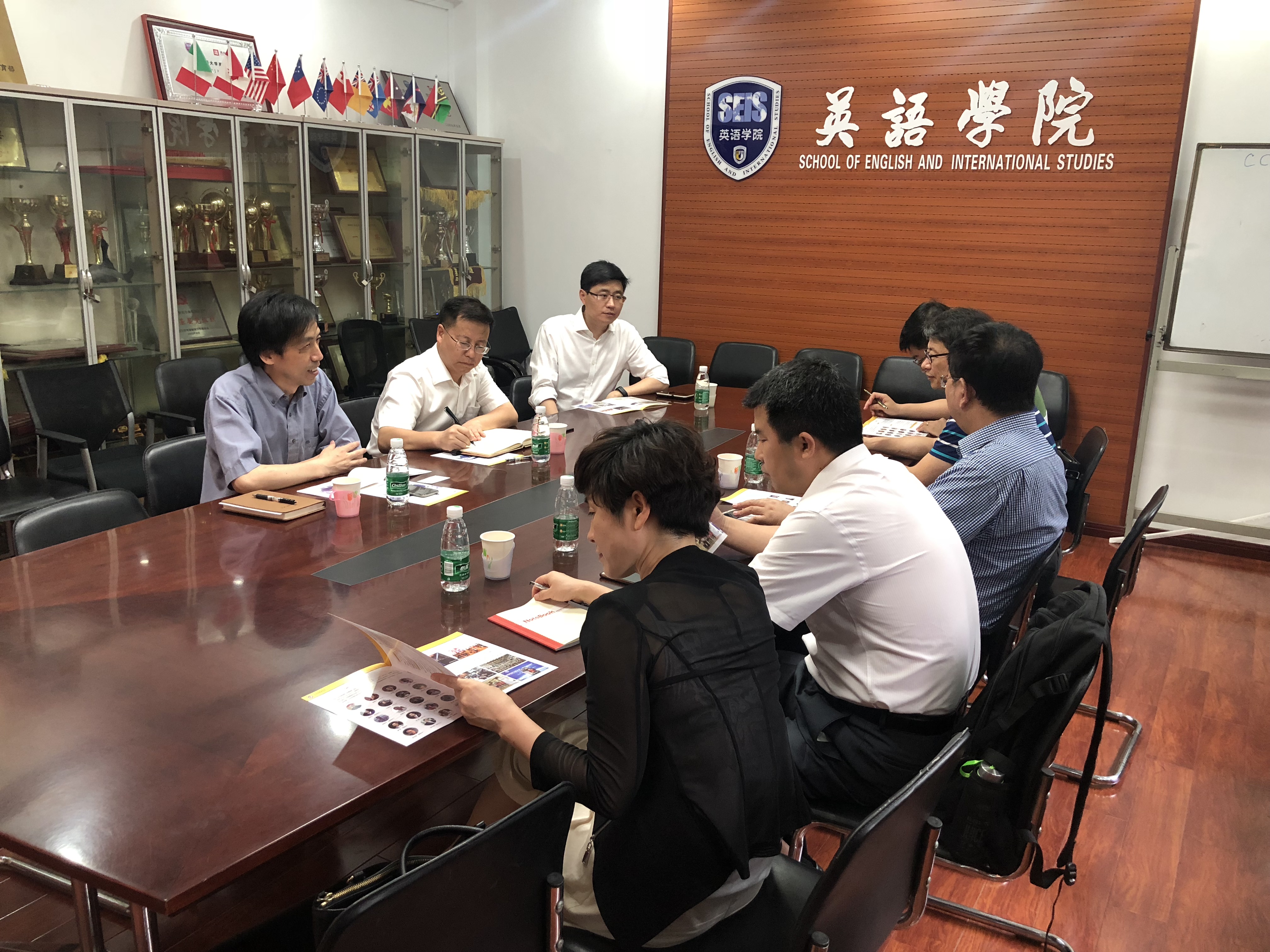 ——在北方民族大学外语学院挂职的我校国际商学院党总支书记刘鹏陪同高岳林副校长一行座谈。