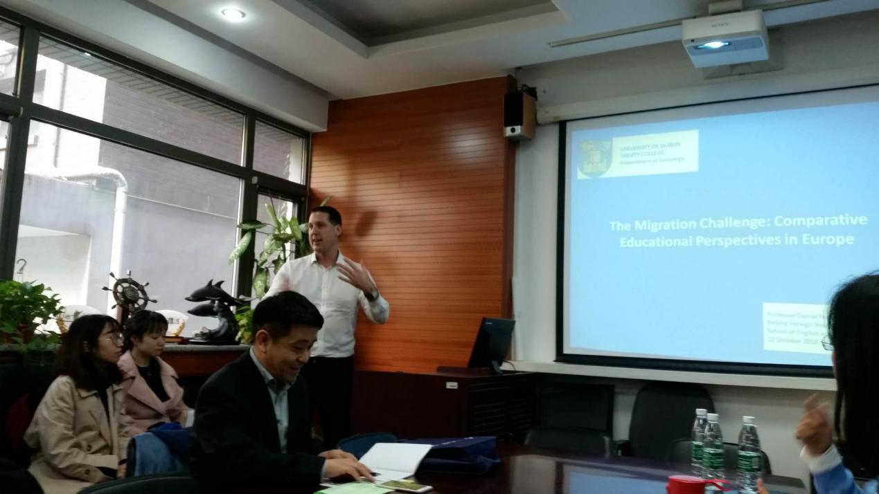1022日下午,都柏林圣三一大学社会变迁比较研究生项目主任、副教授Daniel Faas、国际合作处、北京办事处工作人员来我院举行学术讲座和宣讲会。活动由爱尔兰研究中心主任王展鹏教授主持,爱研及英研学生及我院部分社会学方向的师生参加了活动。