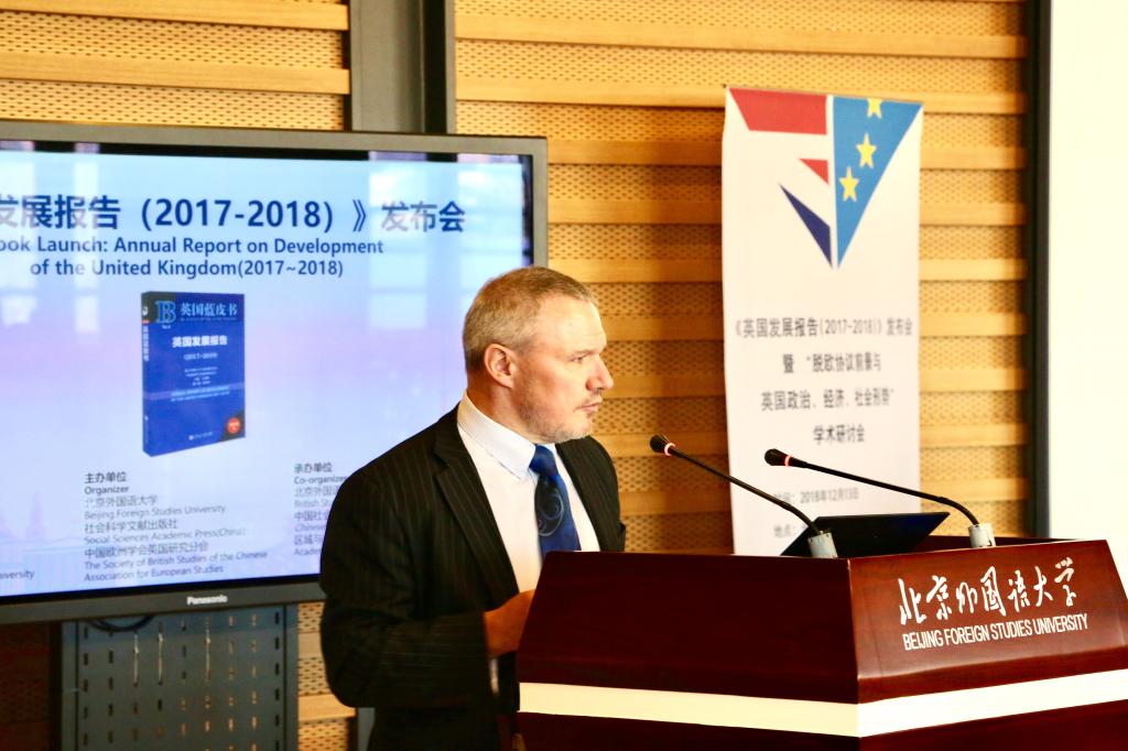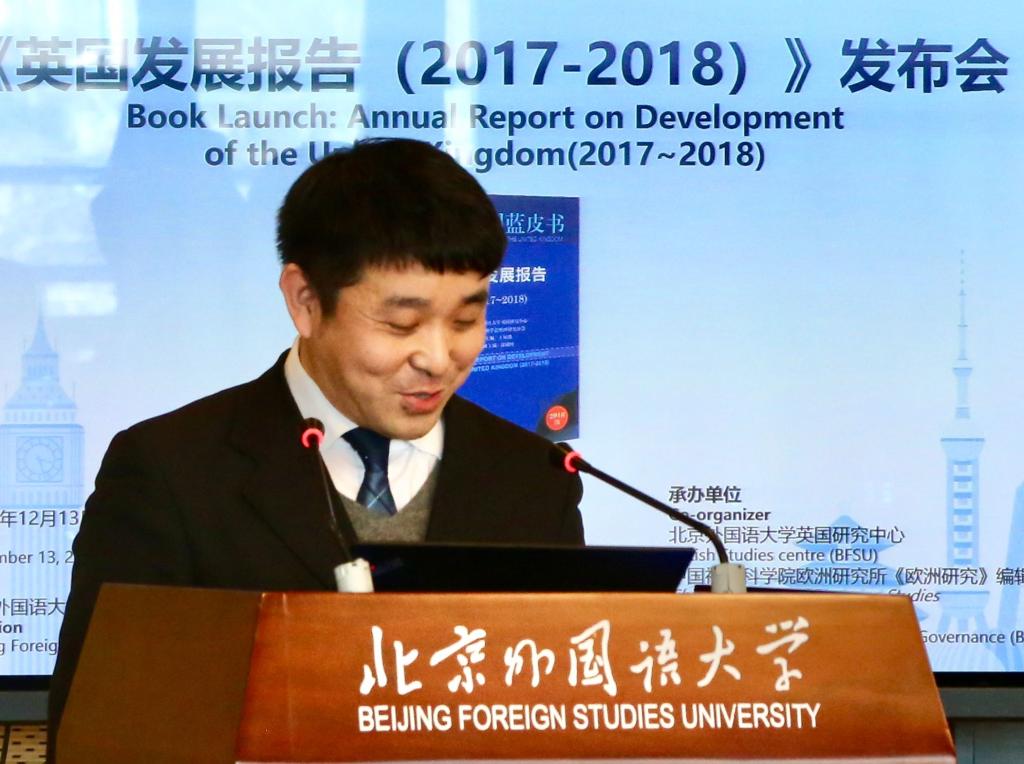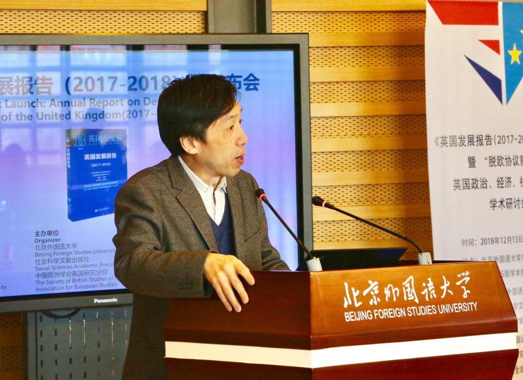 12月13日,《英国发展报告(2017-2018)》发布会暨“脱欧协议前景与英国政治、经济、社会形势”学术研讨会在我校举行。此次活动由我校、社会科学文献出版社、中国欧洲学会英国研究分会主办,北京外国语大学太阳集团tyc9728英国研究中心、《欧洲研究》编辑部、北京外国语大学区域与全球治理高等研究院承办。