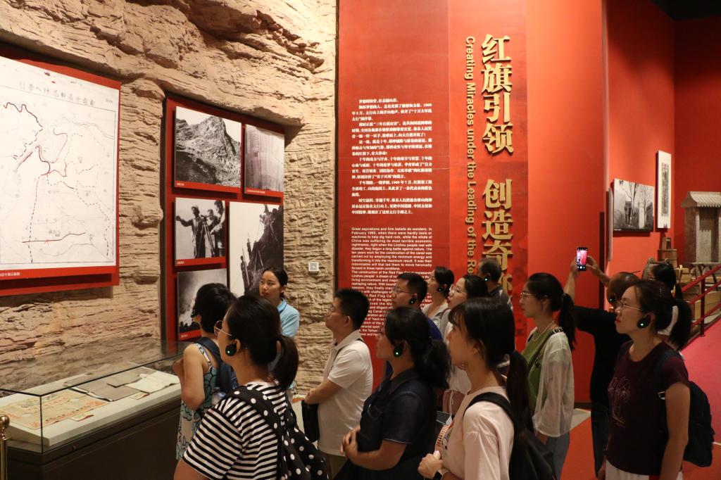 现场教学由带班老师带领大家前往纪念馆进行学习,大家先后参观了红旗渠纪念馆、扁担精神纪念馆和谷文昌纪念馆。通过详细了解一张张图片、一件件文物的立式背景和说明,大家真切感受共产党领导下的林县(现林州市)人民修建红旗渠的伟大历程,深刻领会了我们党从群众中来、到群众中去的群众路线。此外,大家一同走红飘带、走水长城、观摩咽喉工程青年洞以及观看实景舞台剧《红旗渠》,身临其境感受当年那段修渠岁月,对“自力更生、艰苦创业、团结协作、无私奉献”的红旗渠精神有了更加直观的感受和理解。在实践教学环节,参加学习的师生轮流挑着扁担走山路,重走为民路,感受当时全国供销社先进旗帜——石板岩供销社“艰苦创业、勤俭办社、一心为民、开拓创新”的扁担精神。
