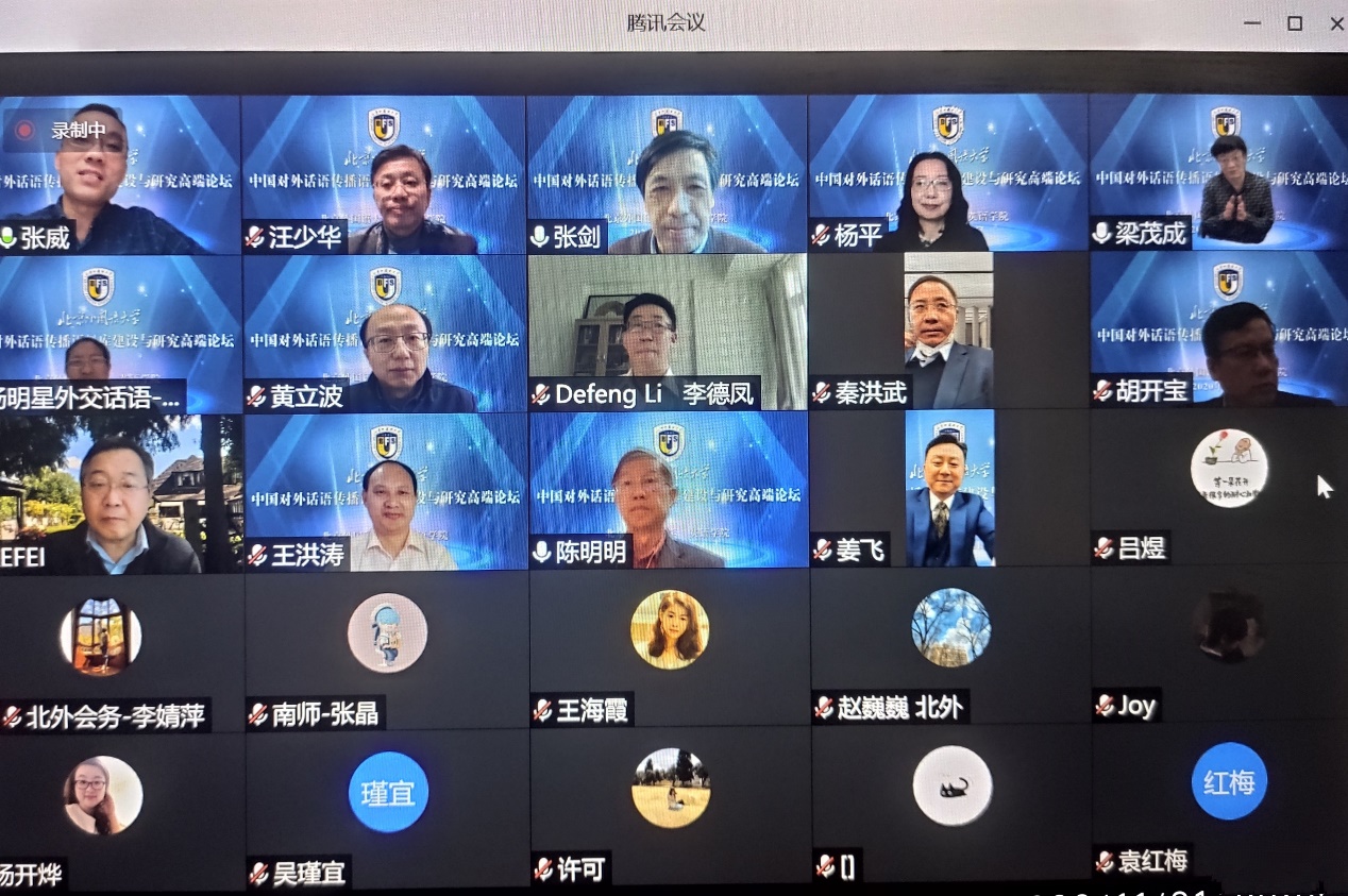 2020年11月21日,北京外国语大学太阳集团tyc9728主办的中国对外话语传播语料库建设与研究高端论坛在腾讯视频会议系统上进行。