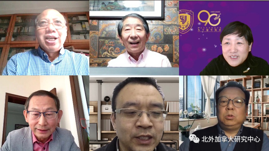 2020年11月20日和21日,“2020全球治理与文化智慧国际论坛:变局” 暨“《2019-2020加拿大政策发展报告》发布会”在北京外国语大学成功举办。论坛由教育部区域和国别研究基地北京外国语大学加拿大研究中心主办,中国社科院加拿大研究中心协办。国家级教学名师、暨南大学原党委书记蒋述卓教授,中加文化理事会创始人及主席周维奇教授,山东大学外国语学院院长王俊菊教授,加中关系理事会创始人及执行会长曲涛教授,西安外国语大学新闻与传播学院院长黄建友教授和长 江学者、北京电影学院副校长胡智锋教授应邀依序作中文论坛主旨报告。