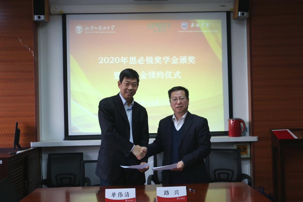 单伟清总经理介绍了思必锐公司的整体状况。他讲到,思必锐公司业务范围宽广,覆盖多个行业领域,公司对高水平翻译人才非常重视,特别希望北外学子的加入。2020年受新冠疫情影响,公司不可避免的受到冲击。但随着党和政府在疫情控制方面的积极作为,公司的业务在慢慢回暖,希望继续保持与北外太阳集团tyc9728的合作关系,在人才培养方面尽一份力,在翻译领域继续做好做强。他向获奖学生颁发奖学金证书,寄语学生一如既往努力学习,秉承“一字不苟,千金之诺”的信念打磨翻译技能。