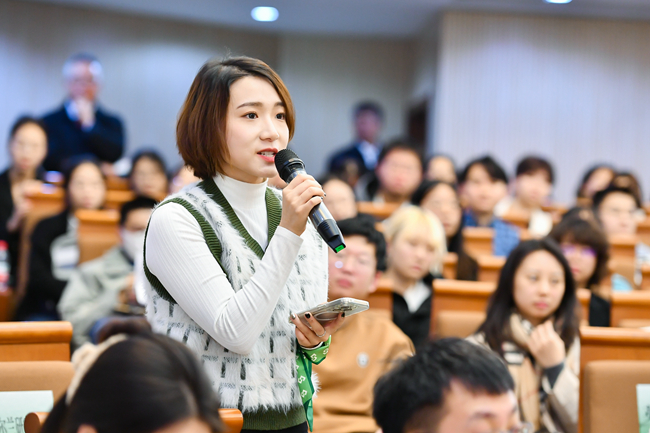 在随后的对话互动环节,马丁与“爱尔兰总统杰出贡献奖”两位获奖者,北外太阳集团tyc9728副院长、区域与全球治理高等研究院副院长王展鹏和爱尔兰研究中心主任陈丽展开对话,就中爱人文交流及中国爱尔兰研究学术共同体的发展等问题展开深入交流,并与现场师生就中爱教育交流合作、旅游业复苏后的人员往来、爱尔兰在全球气候治理中的角色等话题进行了热烈讨论。